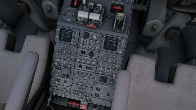 So right to the front … and sit down. With Track IR, it immediately conveys that this used to be the dimension of a business jet, now packed with airliner technology – it’s cramped. It’s a good thing that the user is not simulated – one constantly would receive collision reports. And something else is noticeable…such a familiar “Aerosoft” feeling, as you know it from the FSX airliners for example, something about the graphics has a “stable smell”, at least these are not photo surfaces with wear marks, but computer textures. The cramped quarters are also noticeable “during working” – the screens are quite small (though informative), you have to lean way over to read. And the many buttons, cogs, levers are close together and they are small. The CRJ is something for good eyes and for pianist hands. Aerosoft can’t do anything about that – on the contrary, the feeling comes across very well. The operation is then also delicate… you have to look very closely, and use the mouse precisely to hit the right cog and then turn it in the right direction. Unfortunately my VR-Insight-Panel doesn’t work for Aerosoft’s CRJ, that would make a lot of things easier (and surely there will be help from the community soon). This CRJ is just not a “sit in and fly away” addon, it needs to be worked out. You have to get used to it.