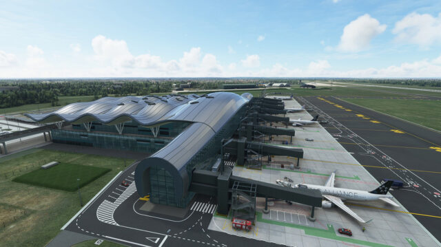 It serves the capital and it is reproduced with special attention to the elevation, including the actual slopes of the apron. And the terminal with its modern architecture is ready for your virtual passengers!