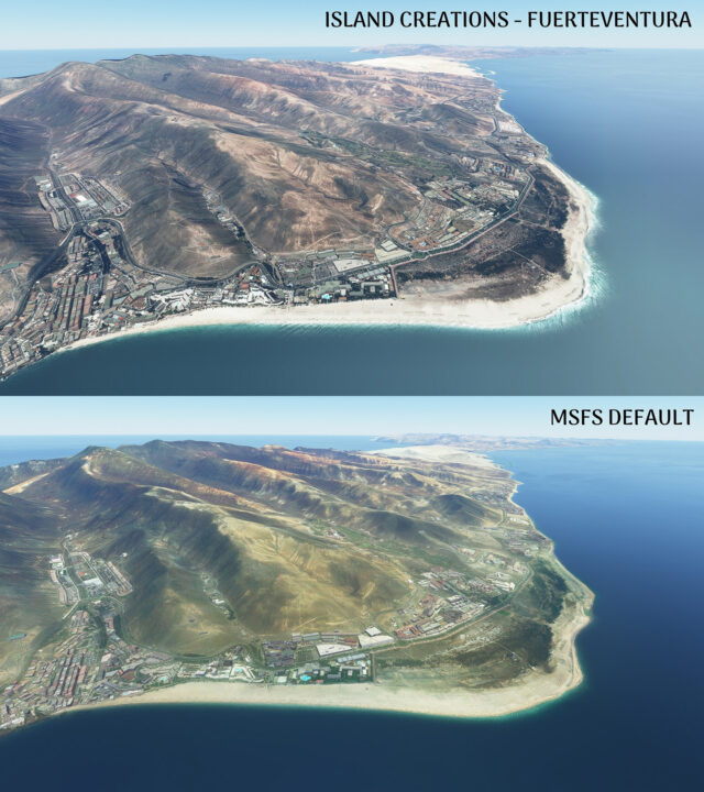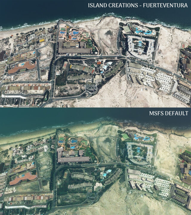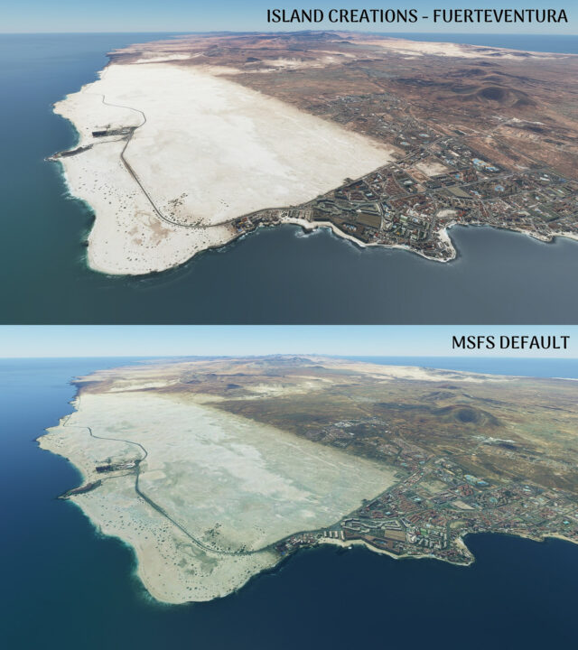 They solve the issues with the default ground textures like the unrealistic colors (e.g. the green tint, especially green roads and sand), contrast issues (e.g. some really dark areas) and clouds in the picture. They created these add-ons because we know that a lot of people have been waiting for a realistic version of the Canary Islands in a flight simulator for years and even the new MSFS could not provide one due to the poor quality of the Bing Maps aerial imagery.