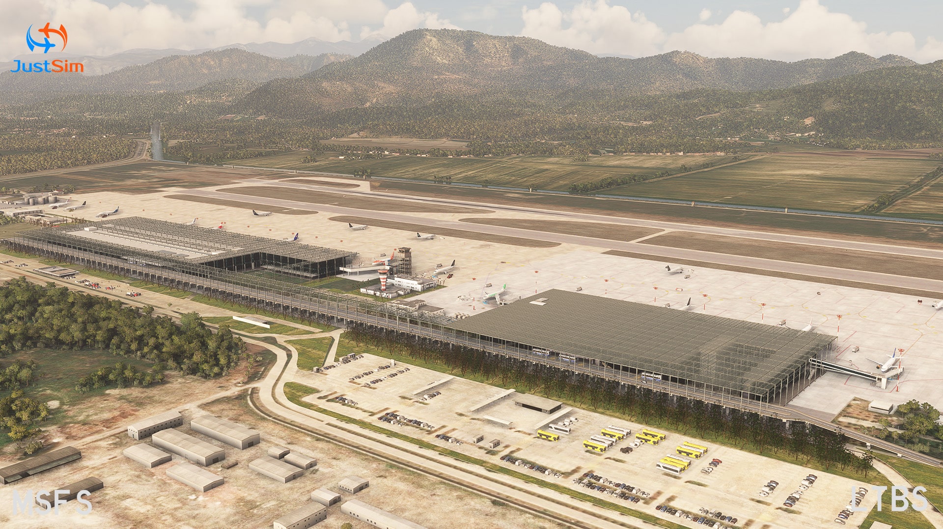 JustSim team released another excellent MSFS airport scenery, in Turkey. The runway threshold at Dalaman LTBS is on the shoreline of the Mediterranea Sea with beautiful approach and views during final descent.
