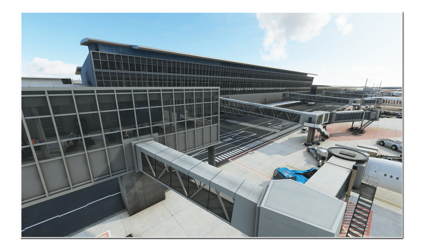 Their product details well the exterior with custom and animated jetways, and the interior as well with 3D humans and terminal interior.