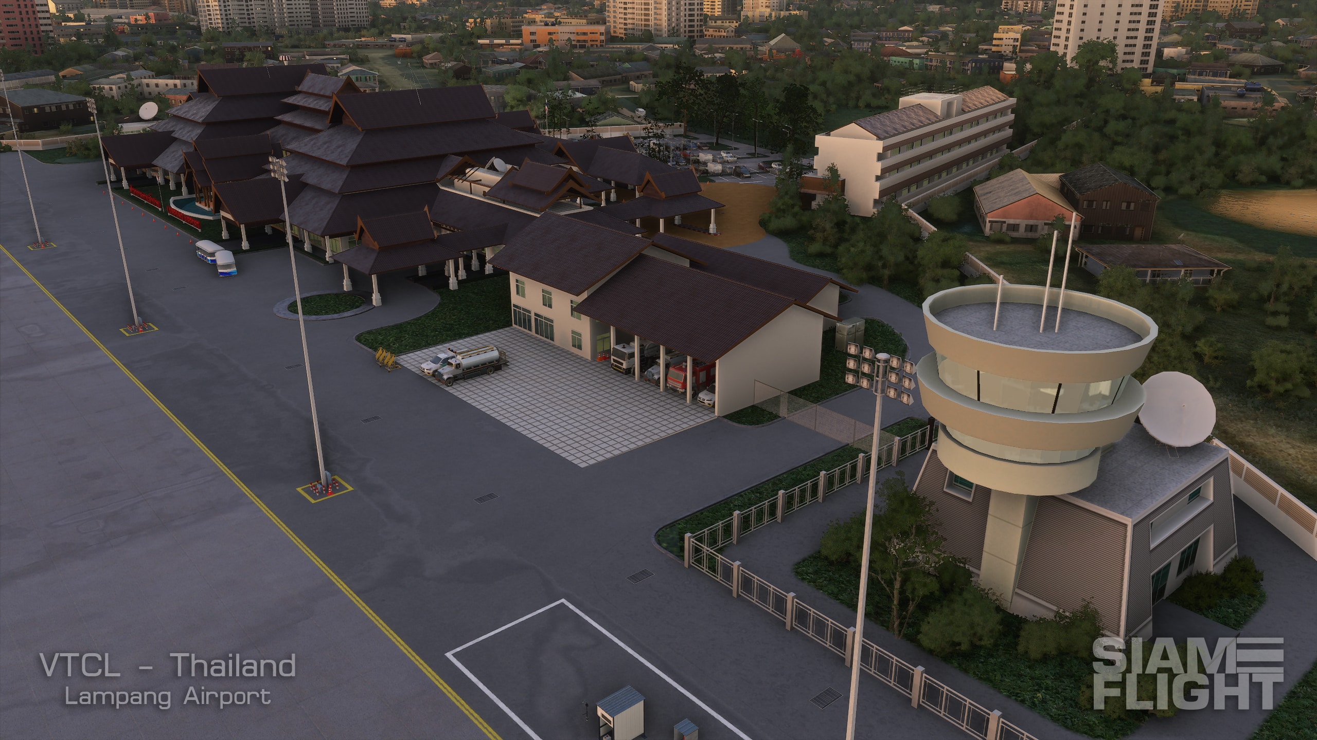 In Thailand, the airport of VTCL Lampang can receive medium range airliners and it has beautiful buildings modelled for MSFS by Siamflight.