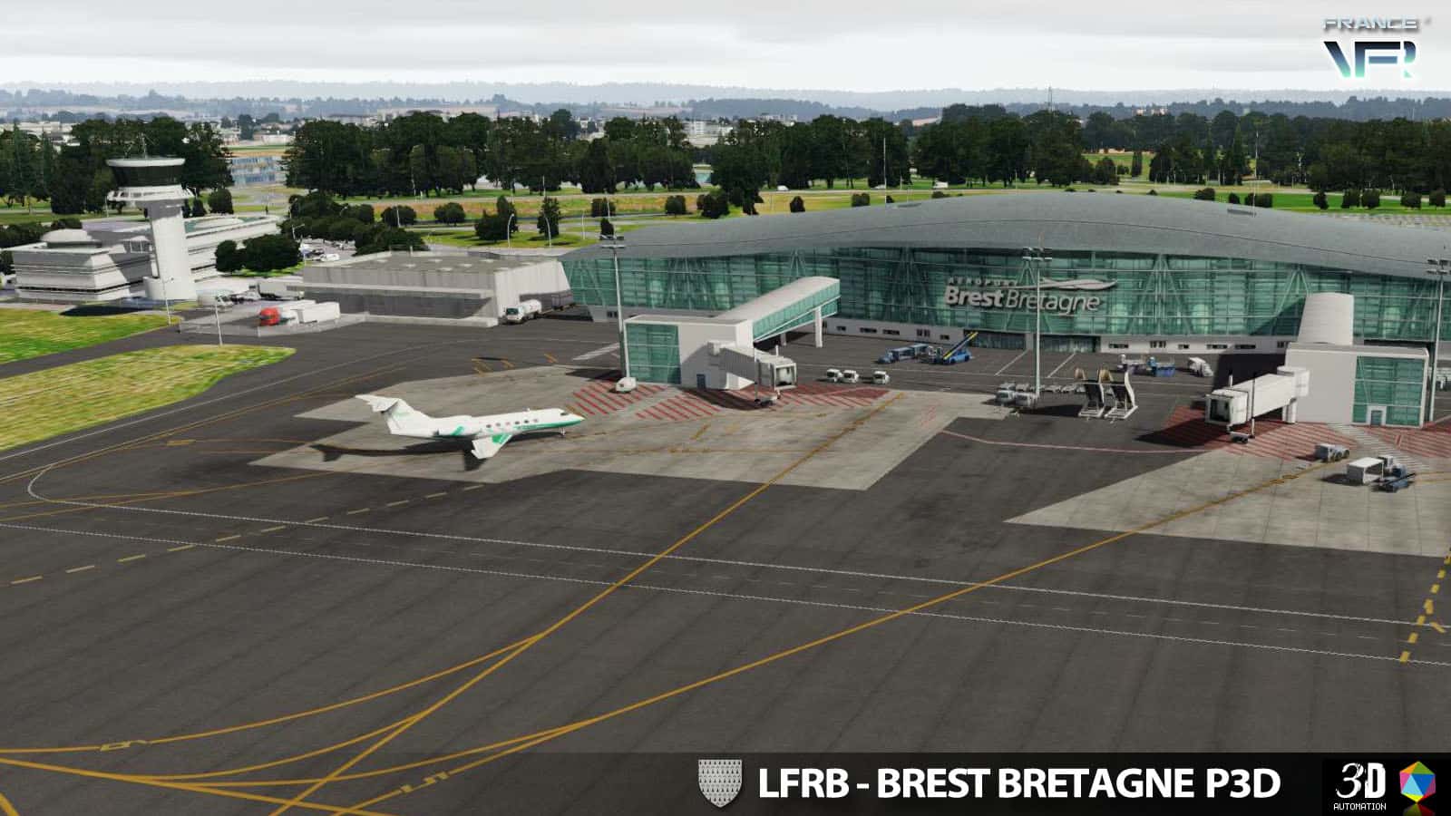 LFRB – Brest Bretagne for P3D v4/v5 models the regional airport in France that is at the western tip of French Brittany region in an extremely detailed way, including high definition buildings, ground textures as well as the corresponding night textures.