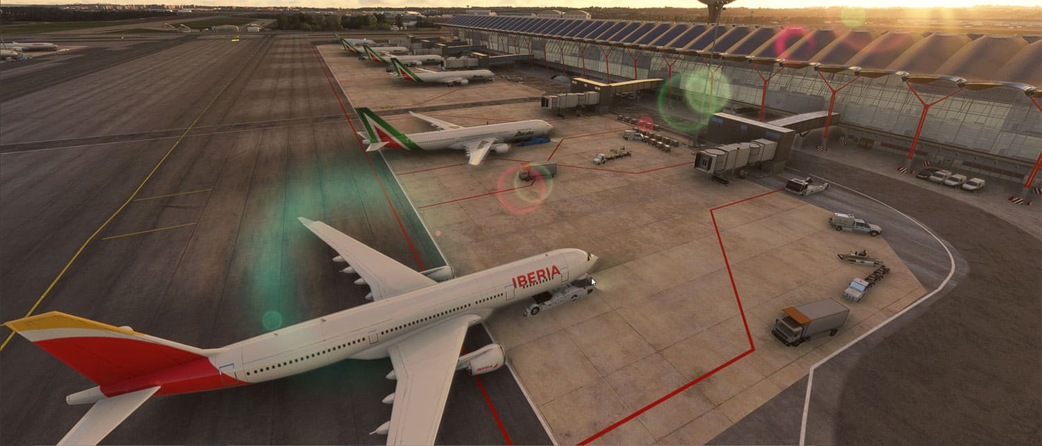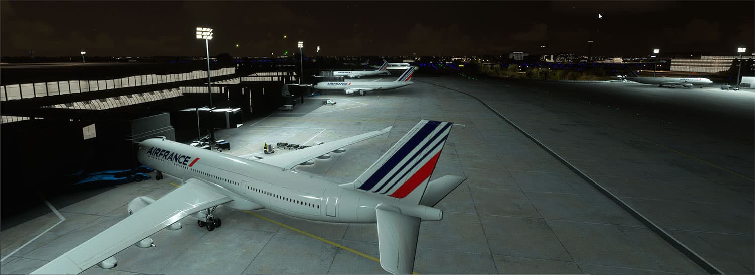 See American Airlines parked in the US airport, or Air France at Paris Charles de Gaulle and so on. +1400 traffic routes are included already, and more will come with next updates.