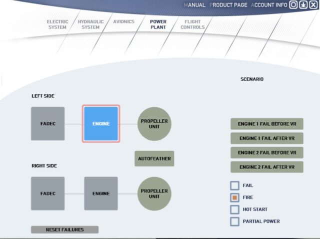 In this particularly advanced version, you will also have technical features like FMS RAIM simulation, flight controls disconnect simulation and more failures possibilities (Flight Controls, Landing Gear, Powerplant), Surface slopes support.