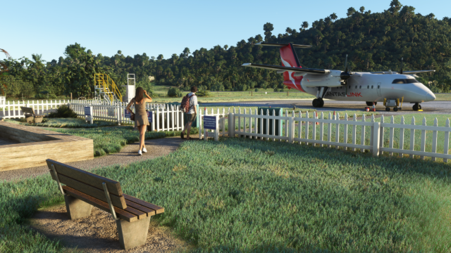 Lord Howe Island has a very detailed airport with 3D interior. All other aspects receive the same attention to detail : surroundings, landscape, objects and characters with even a sloped runway and .. animated cows.