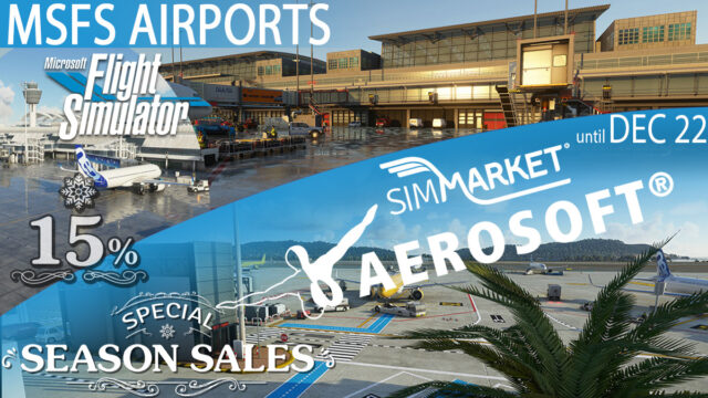 Last weekend before Christmas, and simMarket with Aerosoft joined up to make a lovely sale on most of their MSFS airports, so you can save money : 15% OFF until December 22.