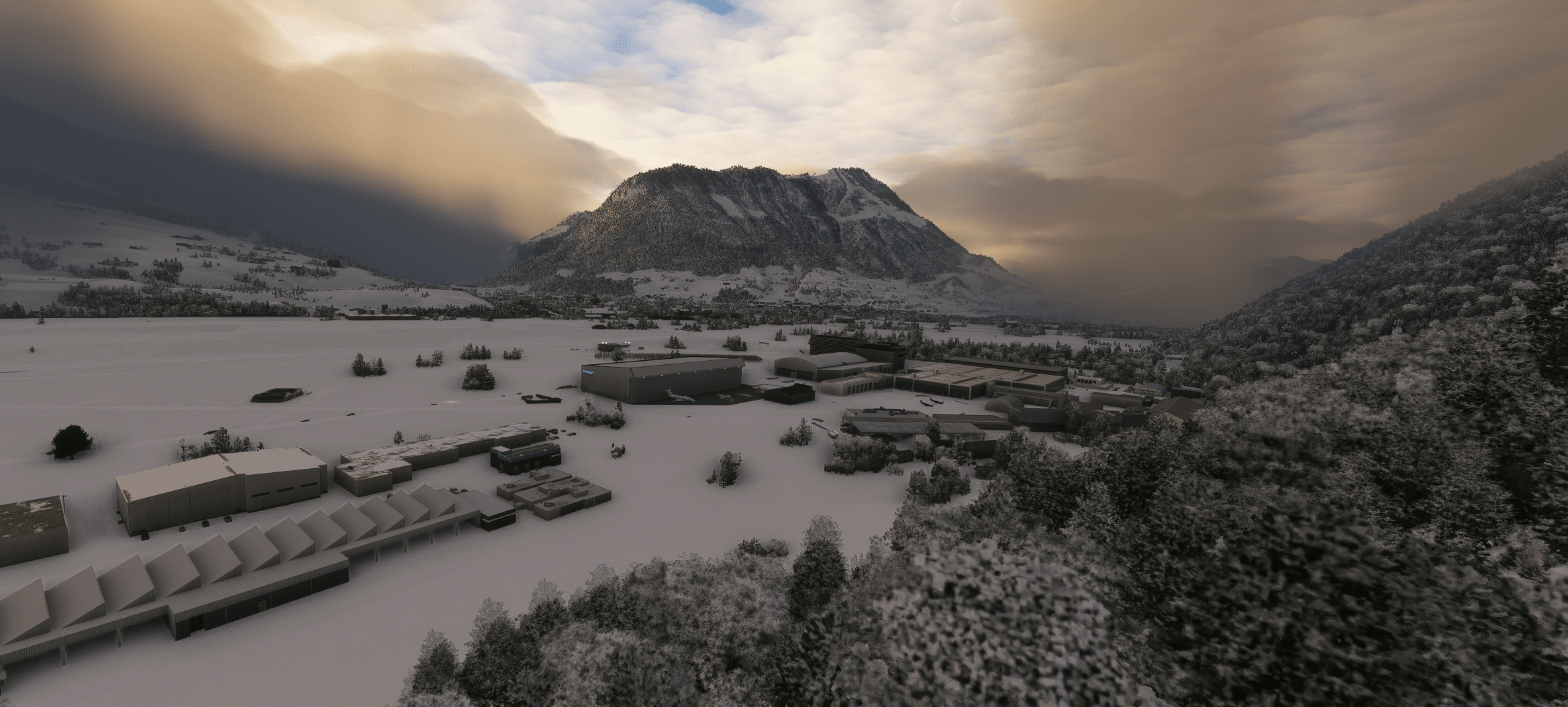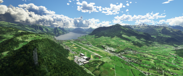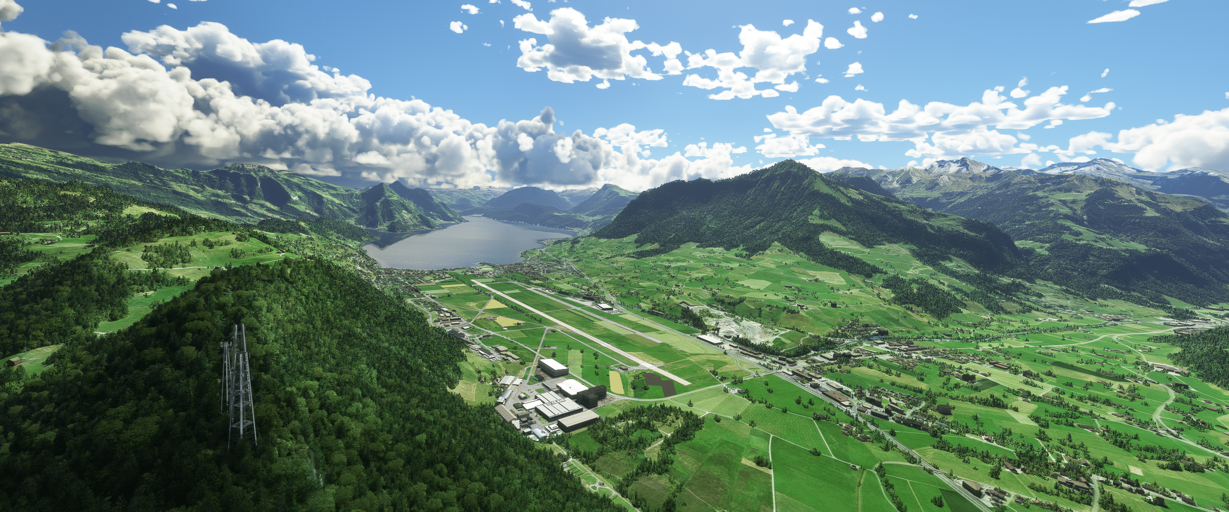 The little airport of LSZC Buochs Switzerland for MSFS will let you experience beautiful approach and takeoff procedures with the nearby Alps mountains and the Lake Lucerne.