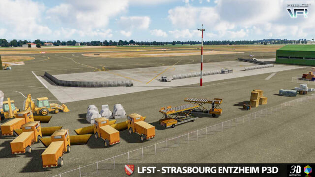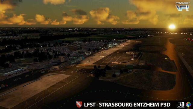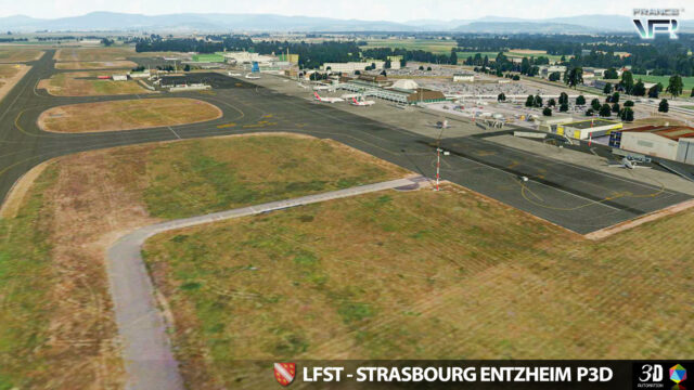 LFST – Strasbourg Entzheim for P3D v4/v5 models the airport of Strasbourg Entzheim (Dpt67) in an extremely detailed way, including building and ground textures as well as the corresponding night textures. The scenery can be used independently or in addition to Alsace VFR scenery. It is also compatible with Truelandscape.