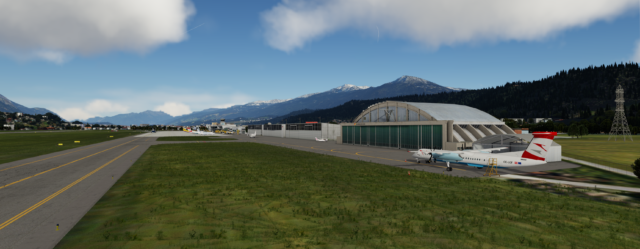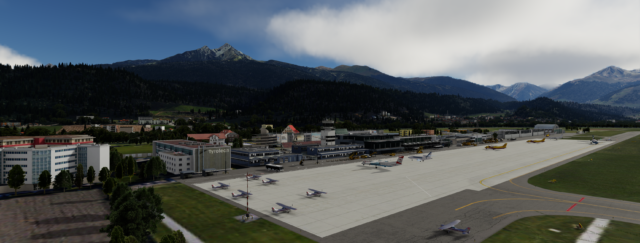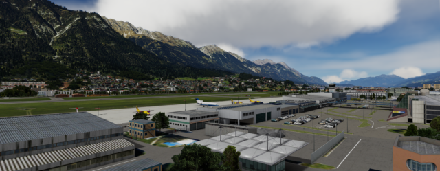 Thanks to JustSim, P3D5 virtual pilots can display a detailed airport scenery for the main airport of the Tirol region in the Austrian Alps : LOWI Innsbruck.