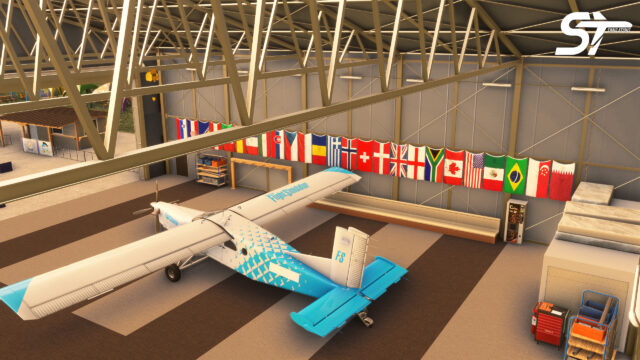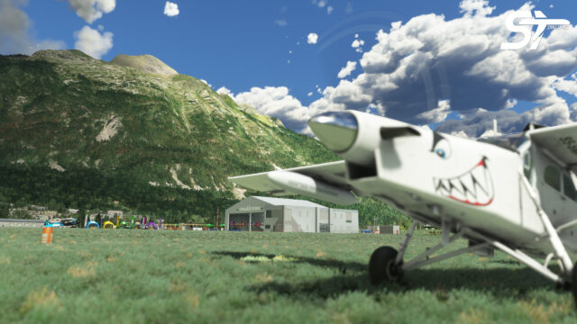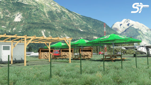 St Simulations added custom details to reproduce the events objects found in site when they organize sky diving meeting : tents, flags with animations, gliders and trailers bring life to the realistic scenery.
