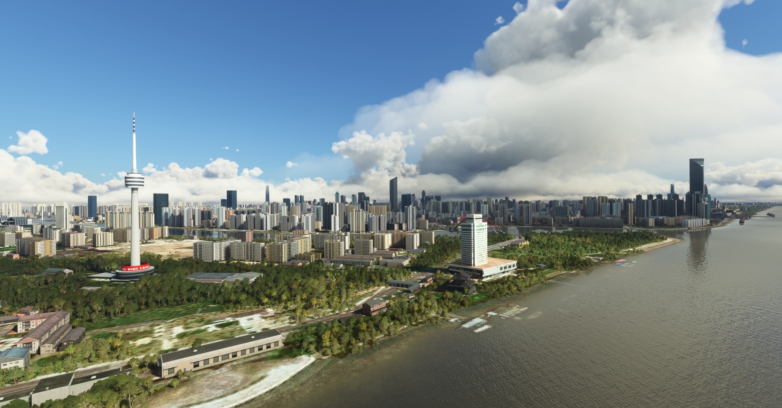 The big city of Wuhan in China is greatly enhanced in MSFS by SamScene product with hundreds of custom buildings and landmarks in downtown.