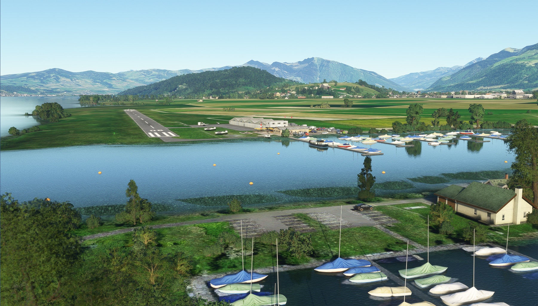 Mailsoft Flylogic is a provider of quality sceneries for Switzerland : let’s fly now to Wangen-Lachen airfield, just beside Obersee lake. And here is the clue why lots of activities can be tested in this place.