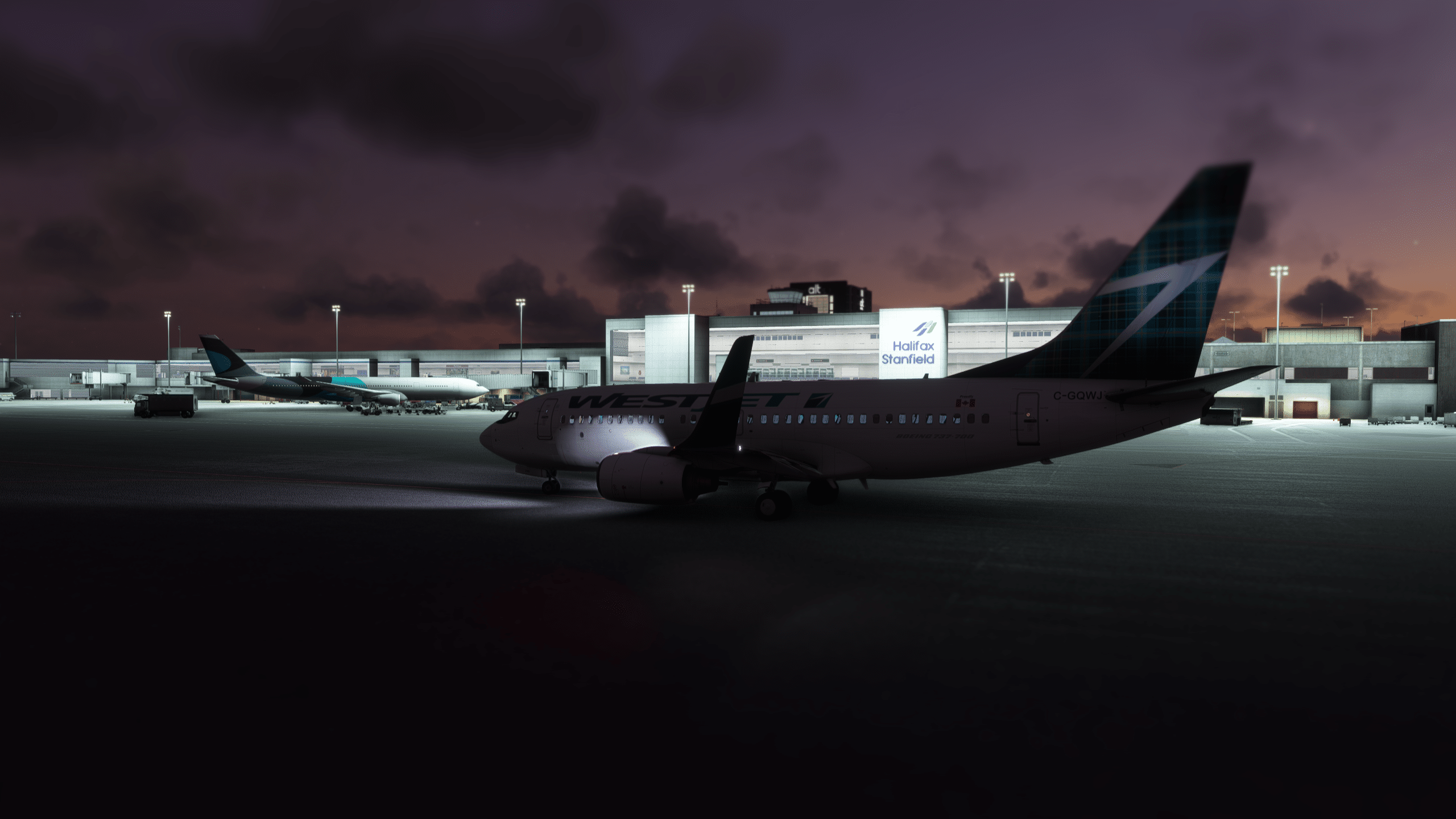But wait for a second! All these fancy bits and bobs would all mean nothing without crip clean textures, believable looks, colors, shades, and silhouettes; preferably, in all possible lighting conditions, regardless of the season. 4K PBR to the rescue, everything you cast your gaze upon speaks for itself. While things look lifelike and sharp during the day, is that sought-after night atmosphere also captured? Do those textures “thrive” also when darkness falls? They do, my friend, they indeed do. At nightfall, when airports become places so full of mystery, the truth shines through. And Halifax comes out victorious on this front as well. What makes an airport so special at night? The divine gleam of taxiway and runway lights, sounds of the screaming APU, the tirelessly crisscrossing carts; service vehicles. The strobes of departing aircraft as the engines spool up… Where do they go? How does it feel like being onboard? It is the scenery that stirs these emotions if the necessary amount of detail is present, in the right place.
