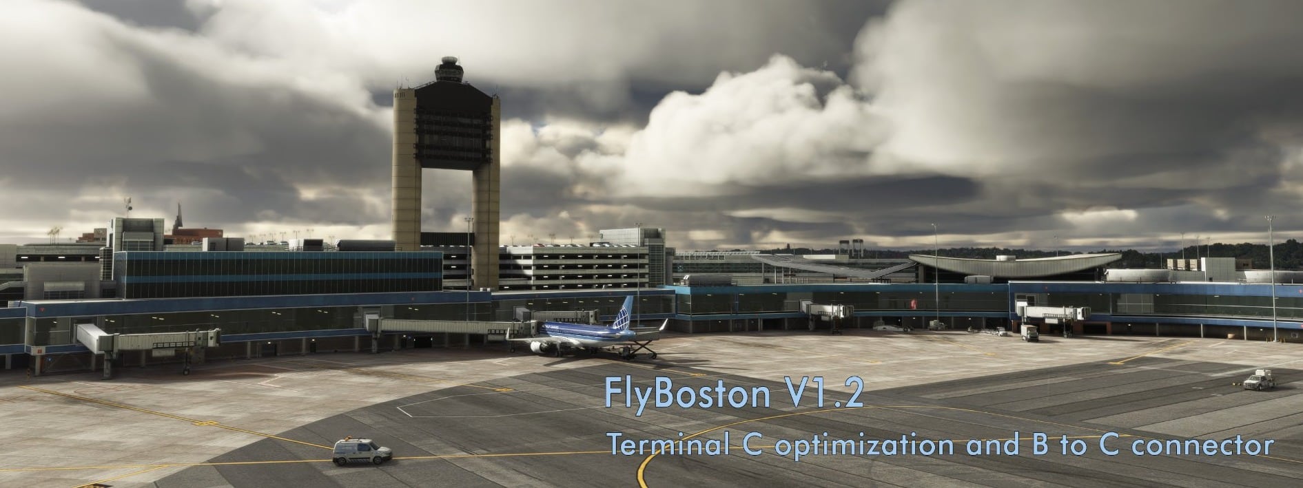 Boston KBOS airport in Massachusetts in the United States received a control visit from its author George Grimshaw of FlyTampa team. The result is a version 1.2 update that allows virtual pilots to optimize the Terminal C, to make connector corrections, and remove bumps encountered on the runways, for example.