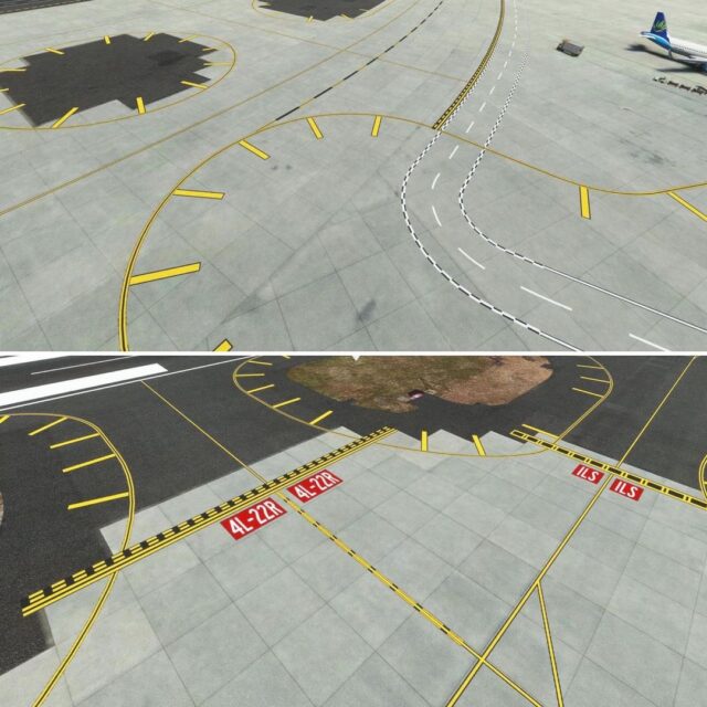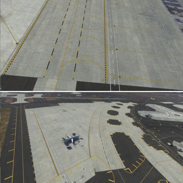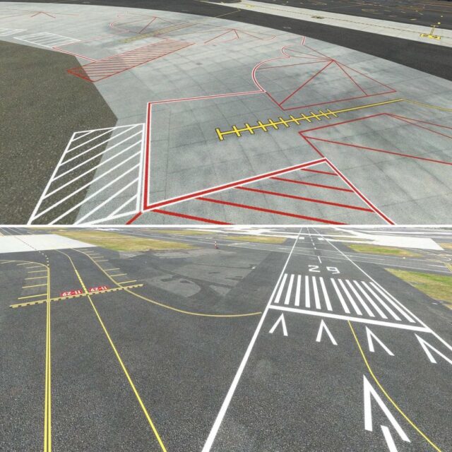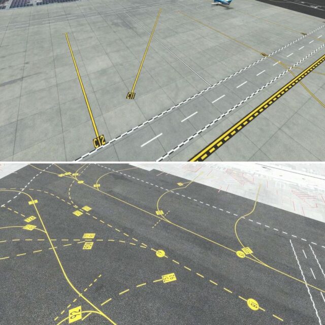 Their pics show several views of their current design progress on the apron polygons with the custom ground markings and taxiway textures. It’s coming well already, isn’t it ?
