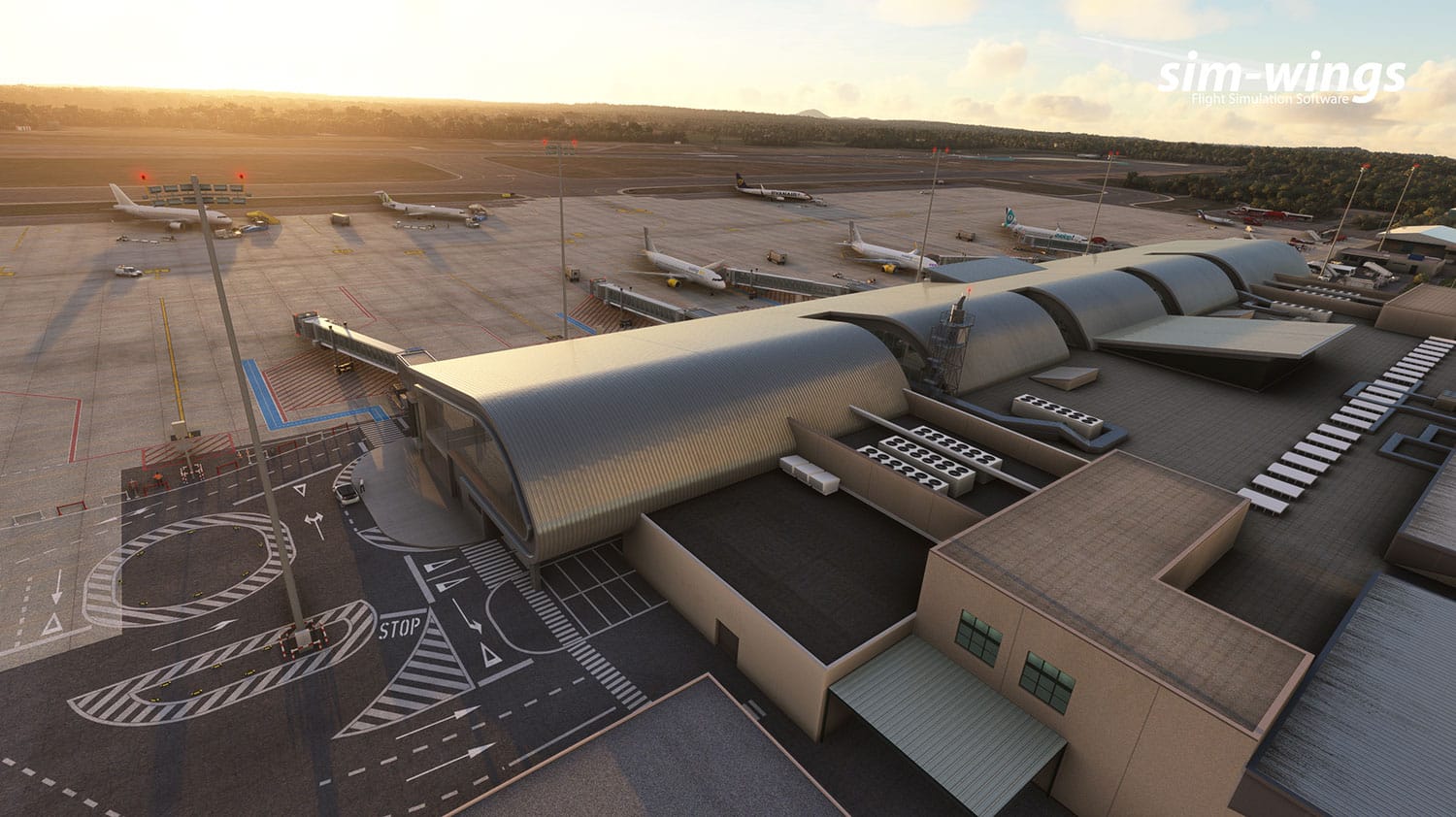 Sim-Wings and Aerosoft launch as new at simMarket a beautiful and realistic scenery of LEMH Menorca for MSFS, with custom recreated and animated jetways, the custom and advanced VDGS parking module of Aerosoft (programmable !), with lots of often sought-after effects such as PBR materials.
