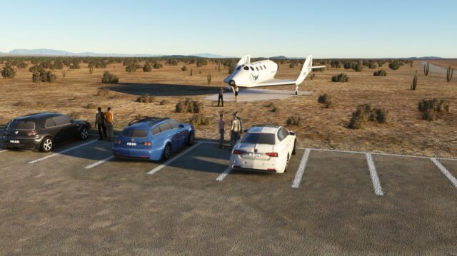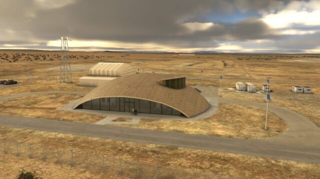 In New Mexico, Spaceport America was an airfield and it became the launch spot and facility of Virgin Galactic and SpinLaunch. Enjoy the complete reproduction for MSFS by UK2000 Scenery with HD terrain, custom details, buildings with PBR materials, fences and vegetation in MSFS.