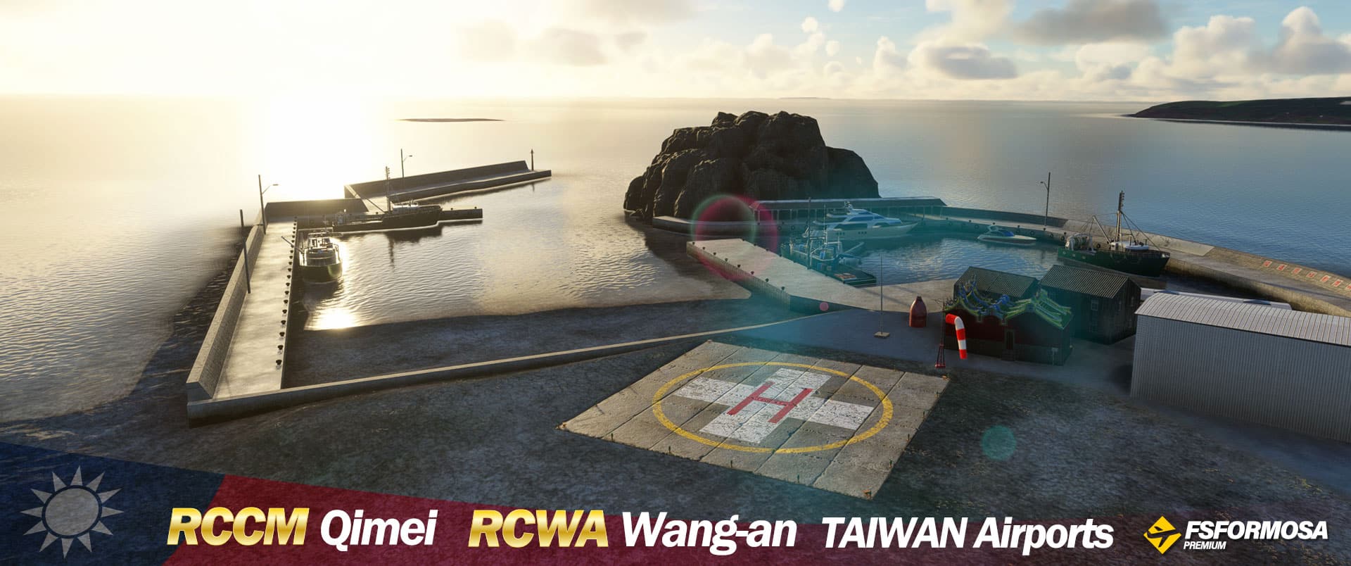 FSformosa has now 4 distinct sceneries for MSFS in stock at simMarket, all of them depict locations in Taiwan with great details. Their latest pack is RCCM Qimei RCWA Wangan Taiwan MSFS and includes 2 airports, and several helipads in a bundle.