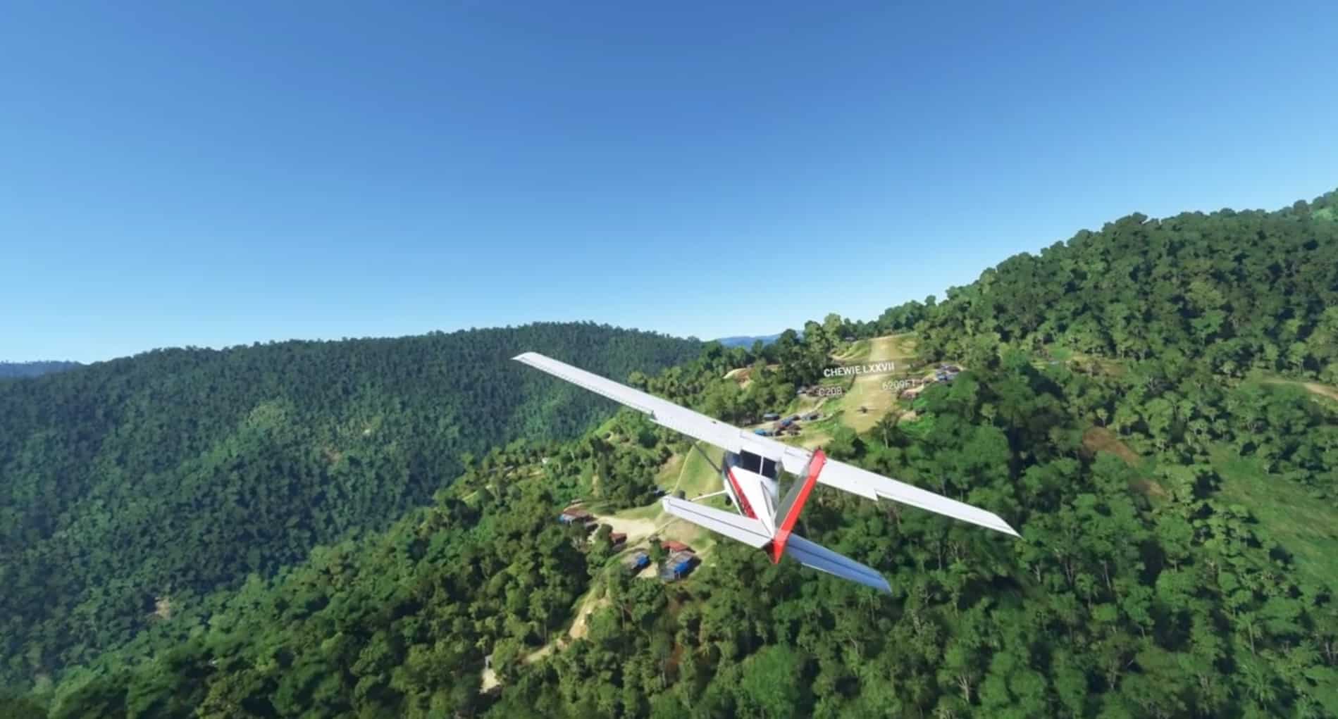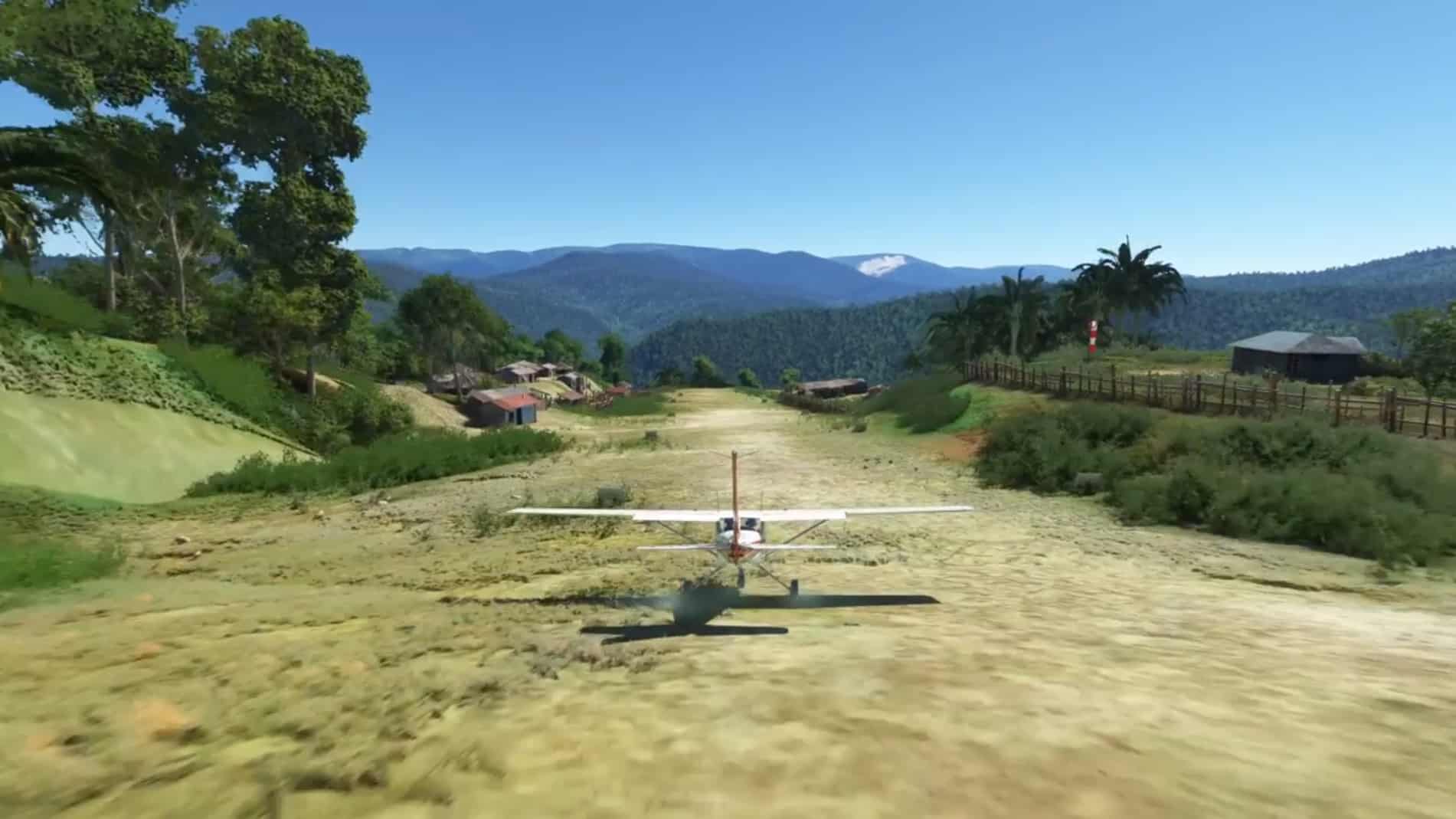 A total of 11 sceneries can be downloaded for the Western New Guinea region. Try for example the one named Bugalaga and identified by the ICAO code WX53 for its dangerous and irregular slope, surrounded by the forest, with some typical houses and fences.