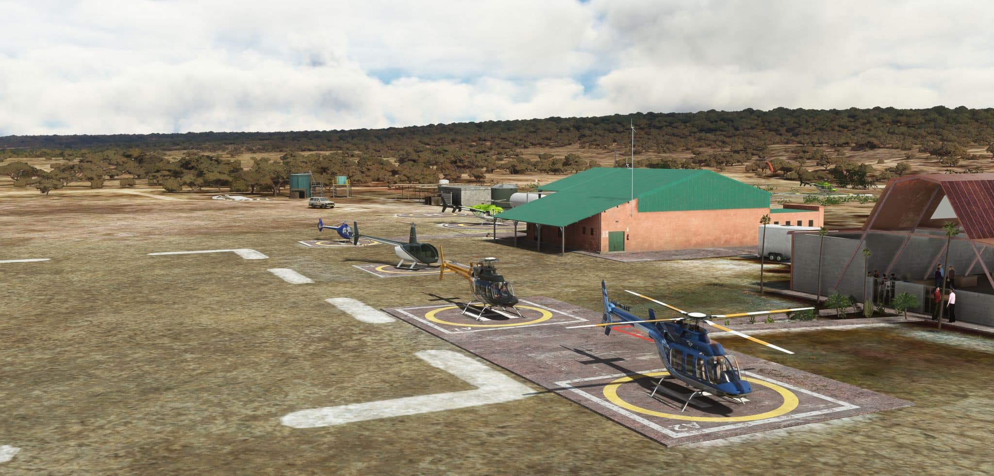 In Zimbabwe Africa, you will get 4 strips, 30 helipads and 6 heliports at once. Along the rapids in the river, and the animated Victoria Falls with sounds and mist effects, you will find boats and hotels to entertain your passengers.