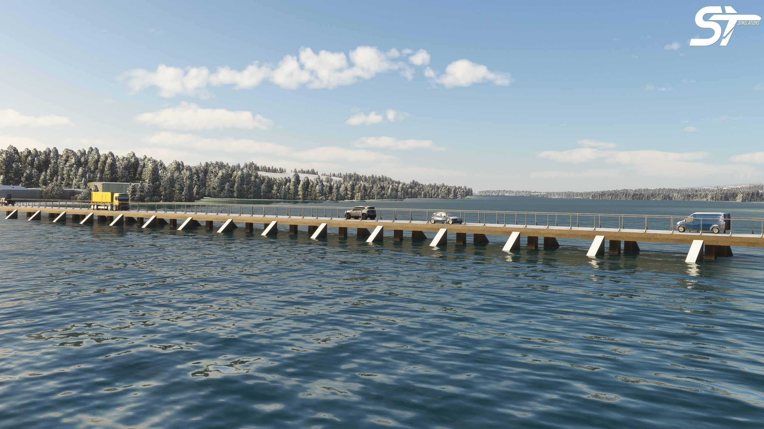 Beside the detailed airport, buildings and custom textures with PBR, the scenery also comes with the nearby bridge Fellabaer, typical houses in the surroundings and other environment details.