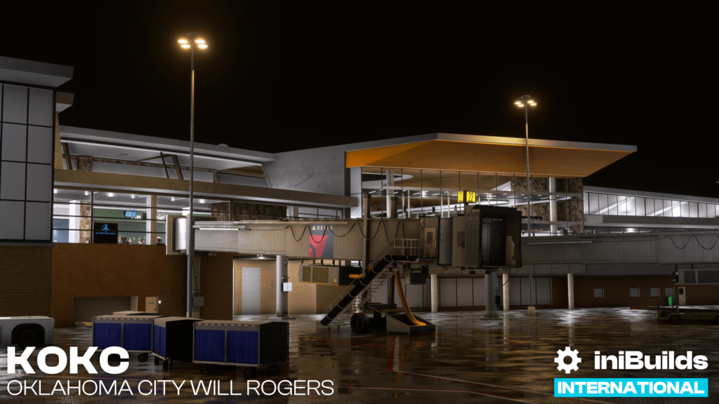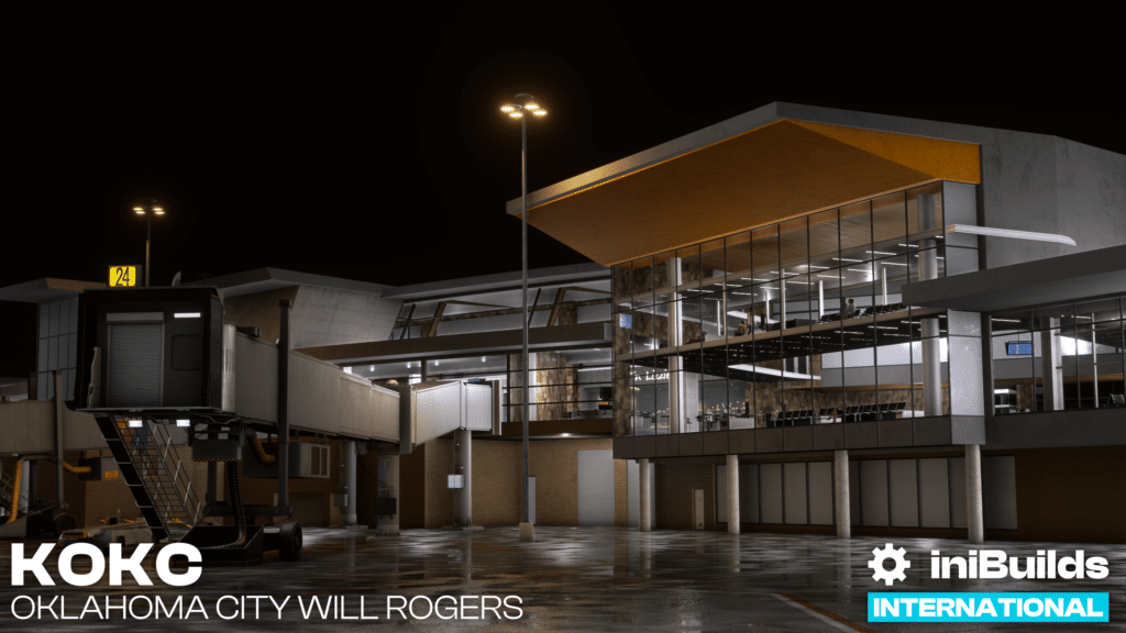 Custom seasonal effects, impressive night lighting and detailed interior : enjoy the recipe of iniBuilds in their latest US airport scenery for MSFS available at simMarket : iniScene Oklahoma City KOKC MSFS.
