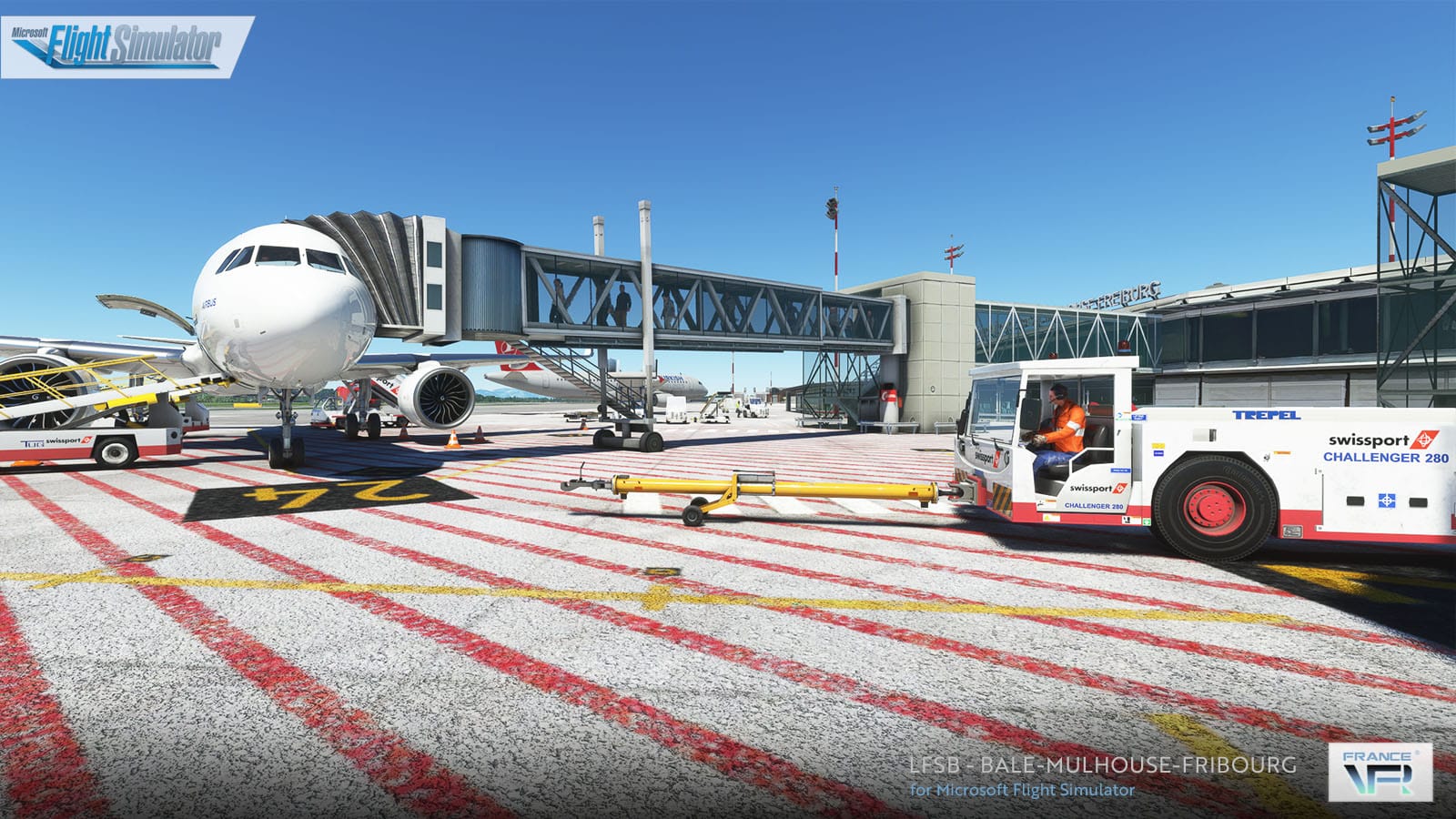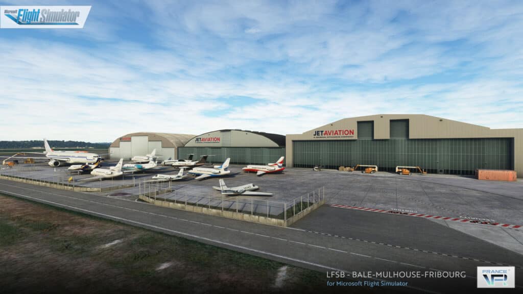 The new airport scenery of France VFR reproduces with many details the different areas of LFSB Basel Mulhouse Freiburg in MSFS. The designers claim to have the most complete and accurate content for the General Aviation area, and for the Basel Flugschule, the flight school club.