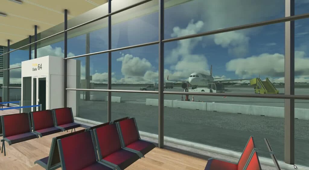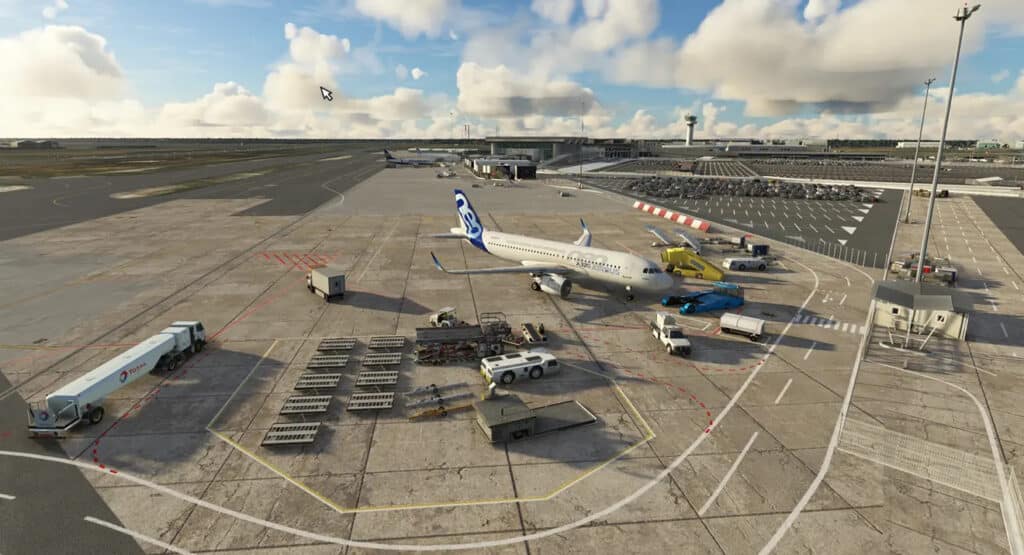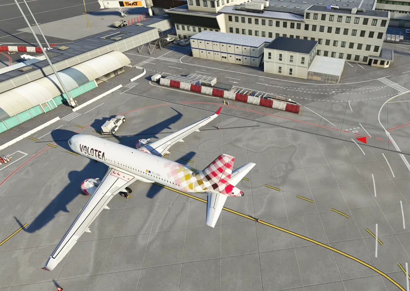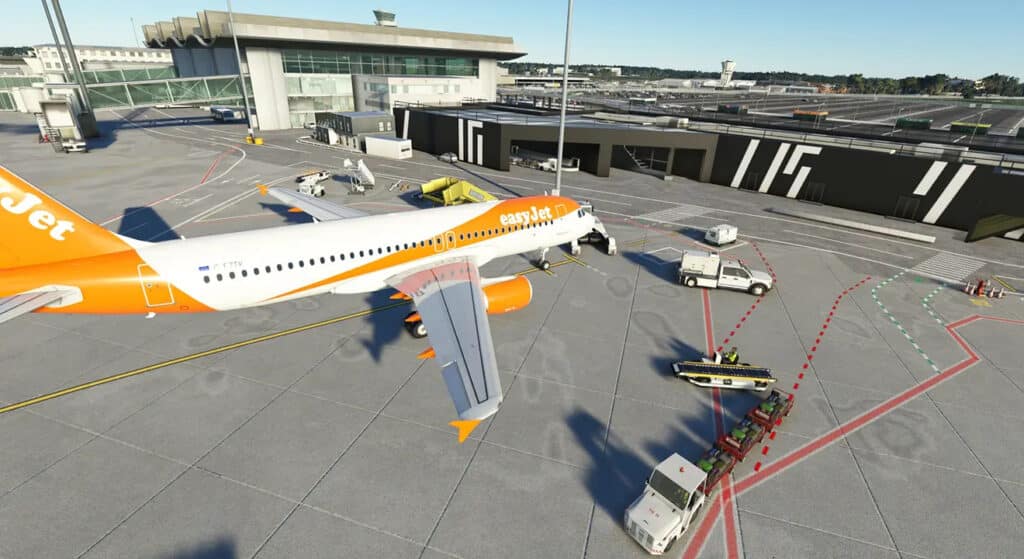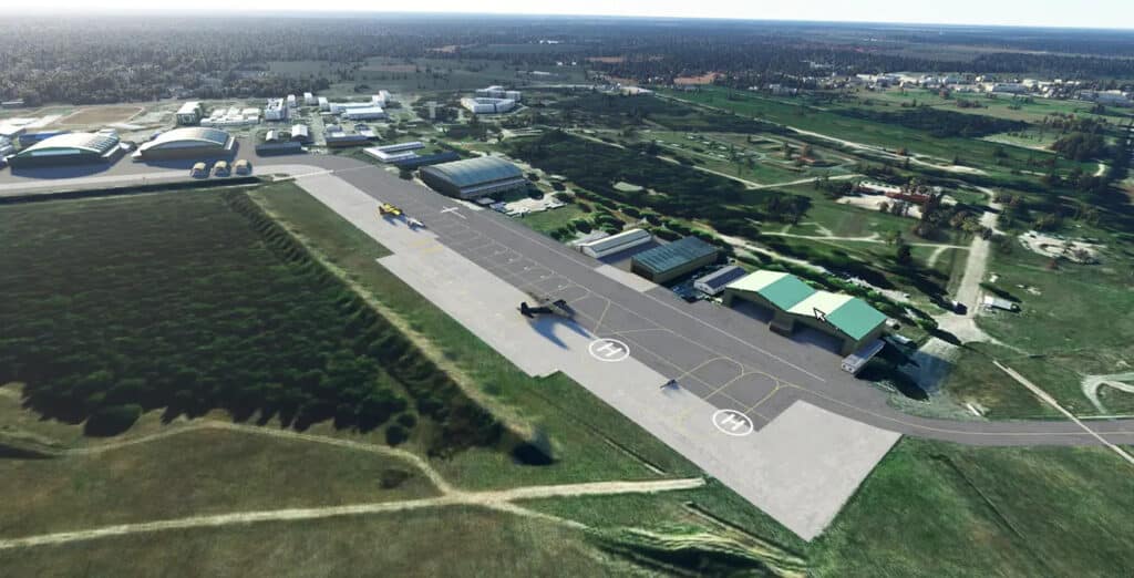 New version 2.0 available. Modification of the Iberian hall, the whole interior is visible, seats, escalator, bay windows etc… Addition of various objects to the TNT, Freight and Post buildings. Modification of the Dassault Falcon Service area, lots of small details have been added. Installation of different fences. Improvement of the BA106: addition of its entrance as well as various buildings and a stele in memory of Cpt Croci, laying of a few trees, this air base is well planted with trees.