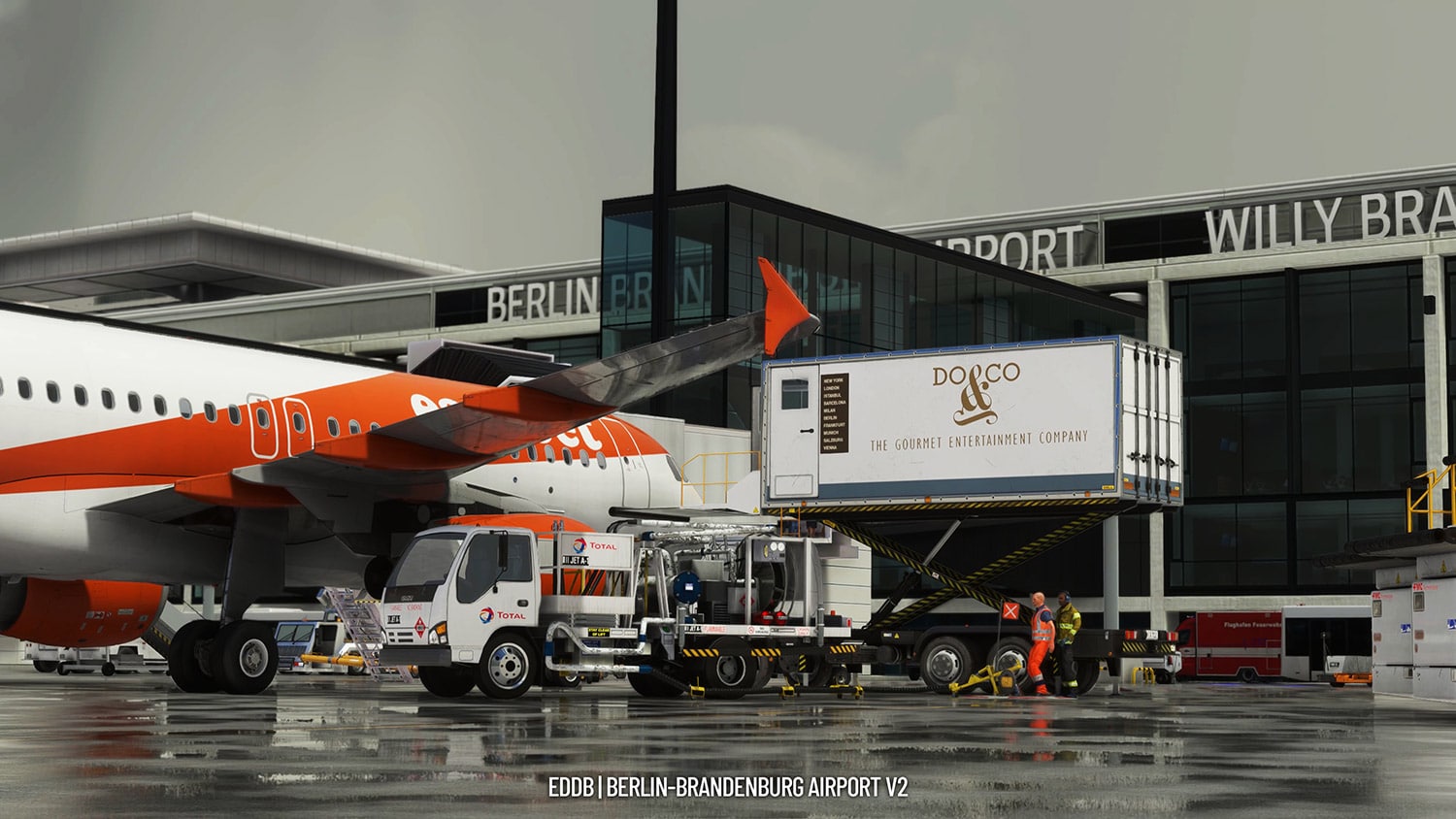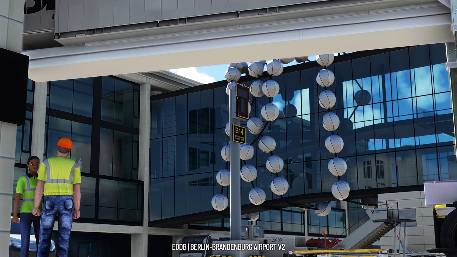 The original version of Mega Airport Berlin Brandenburg was released in 2021, and now there is a new version 2 available with a free upgrade for registered customers. This updated version includes several improvements and additions, such as Dense animated custom ground traffic, addition of animated people in terminals, aprons expansions, VDGS systems, new wigwag models and improved performance.