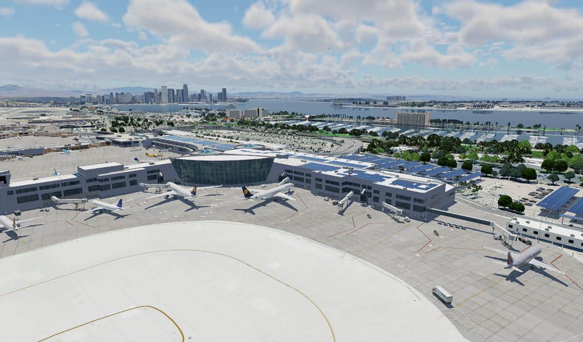 This package is a triple scenery because it includes 2 airports, San Diego KSAN and the Naval Air Staton North Island KNZY) plus the Naval Base San Diego.