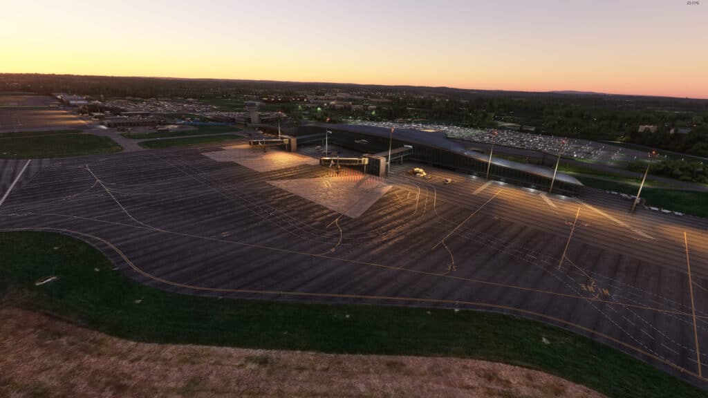 Immerse yourself in the highly detailed scenery, featuring 4K PBR textures for realistic building models and even the interior of the main building. The dynamic jetways, although limited to gates 5 and 6 due to SDK limitations, add further authenticity to your experience. The reworked aerial images from IGN match the colorimetry of MSFS Bing images seamlessly, ensuring a visually cohesive environment.