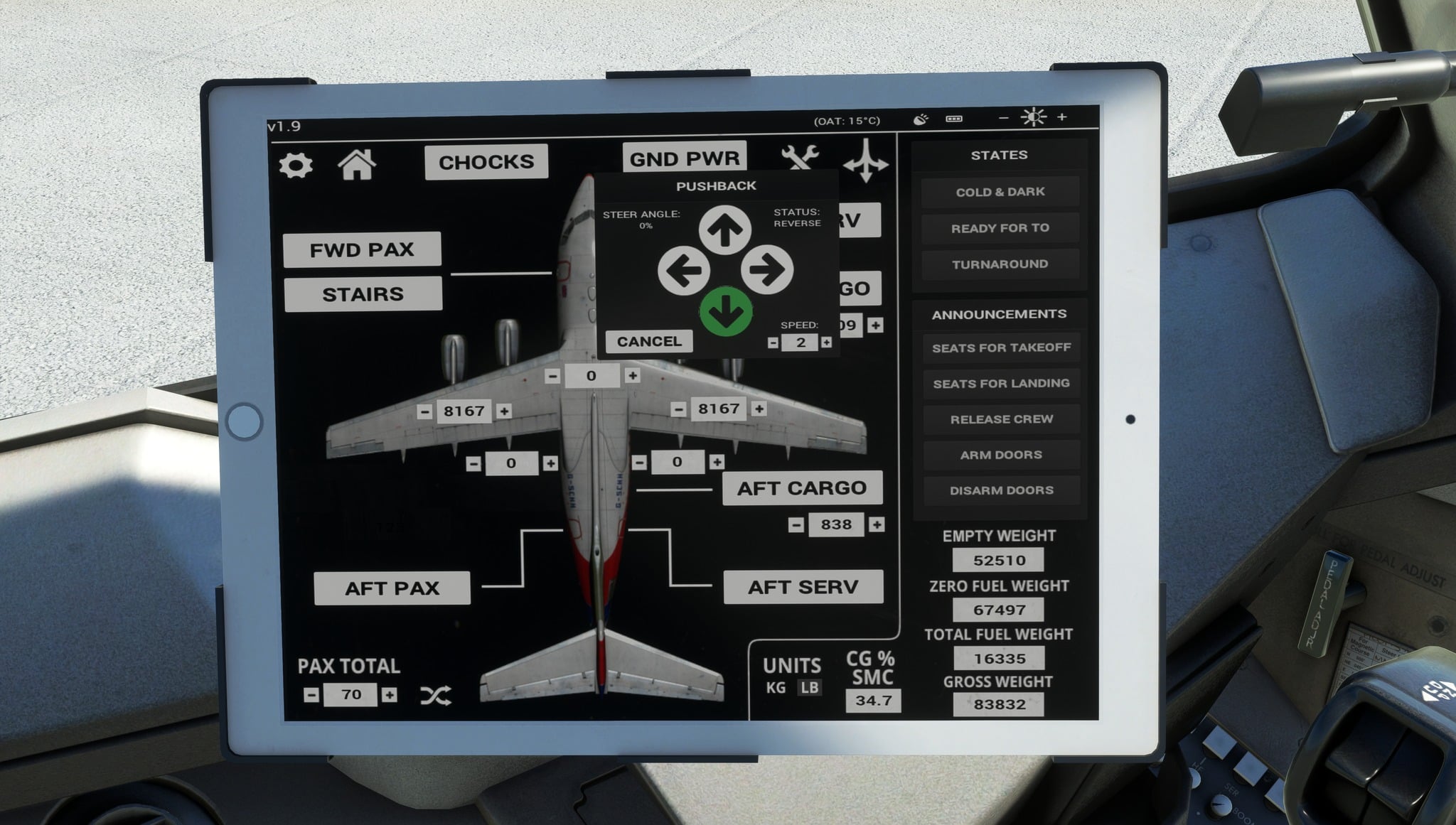- – Pushback controls added to the EFB aircraft page