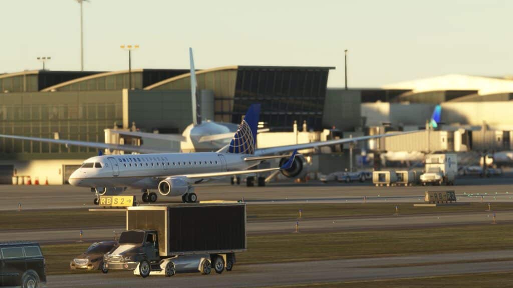 The attention to detail continues with door automation, where all doors at Terminals B and C automatically open and close during passenger boarding and deboarding with GSX. Customized parking positions, accurate airport definition files, and extensive use of dynamic lights enhance the realism. Additionally, high-resolution terraforming depicts bridges and underpasses, while taxiway lights feature dynamic lighting for added authenticity. AI-upscaled textures and MSFS Parallax shaders further improve the overall visual quality with minimal impact on performance.