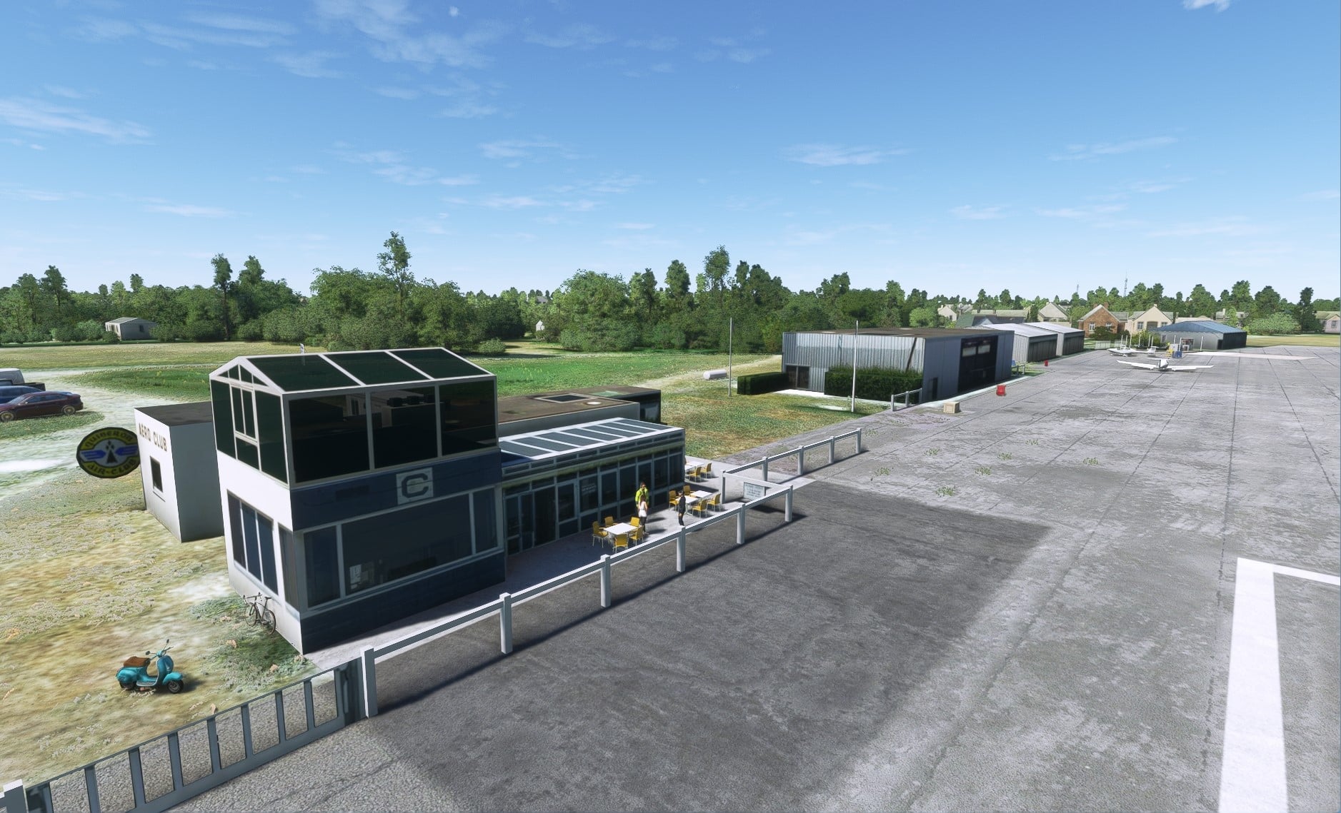 The scenery features over 30 airports and airfields including photo-realistic buildings, extremely detailed ground textures and markings, entire fleets of static flying club planes and reworked vegetation placed with the utmost precision.”