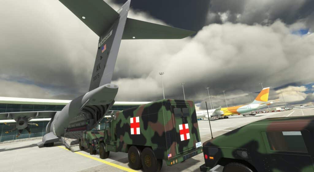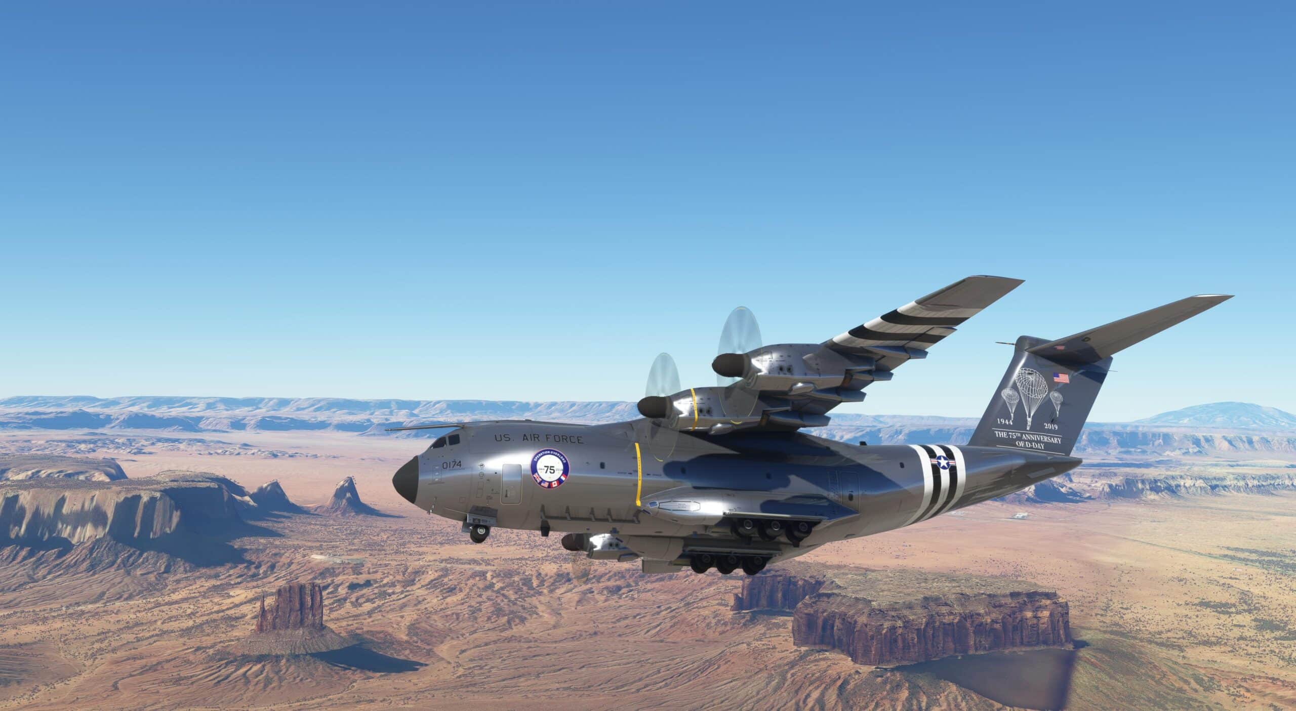 The highly anticipated Airbus A400M, developed by Roland Laborie, has been updated to version 3 for MSFS users. This high-wing aircraft features four propeller engines, a pressurized cabin, and a rear cargo door. It serves as both a strategic and tactical transport and tanker aircraft, capable of transporting personnel and materials in various configurations. With a maximum payload of 37 tonnes and a range of around 3,100 kilometers, the A400M can reach speeds of up to 750 kilometers per hour. It is powered by four TP400-D6 turboprop engines developed by Europrop International (EPI) and has dimensions of 45.10 meters in length and 14.70 meters in height.