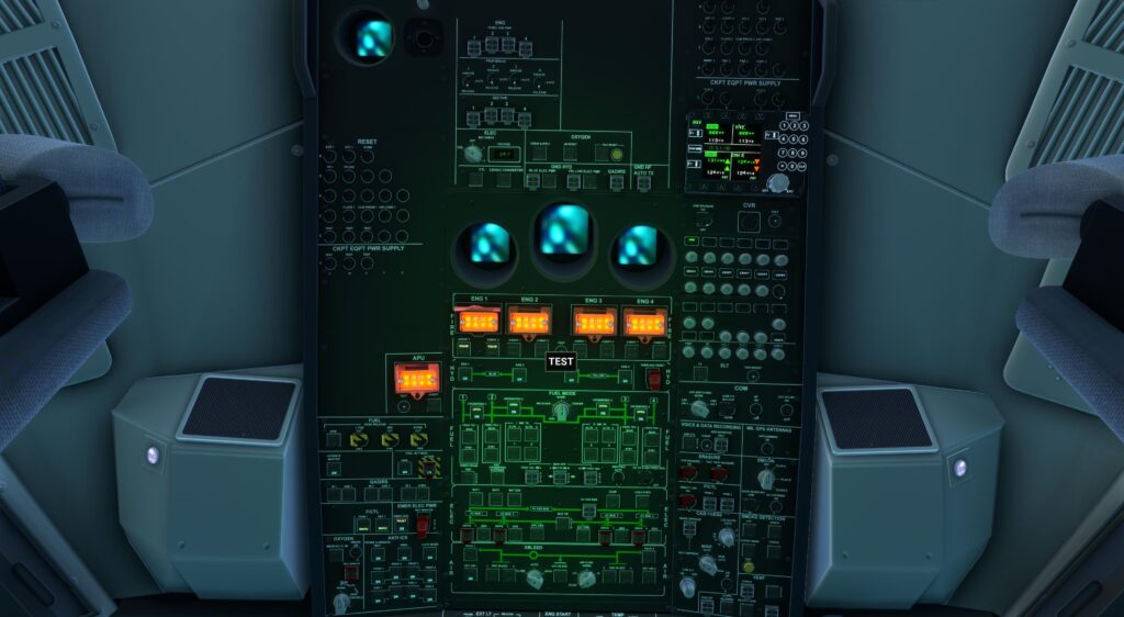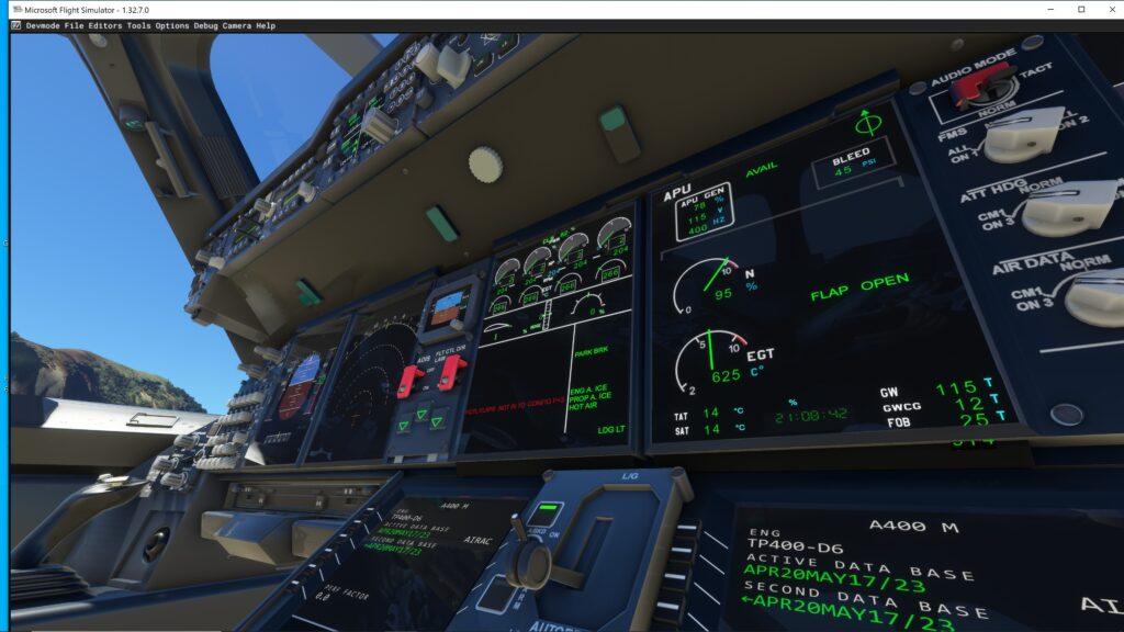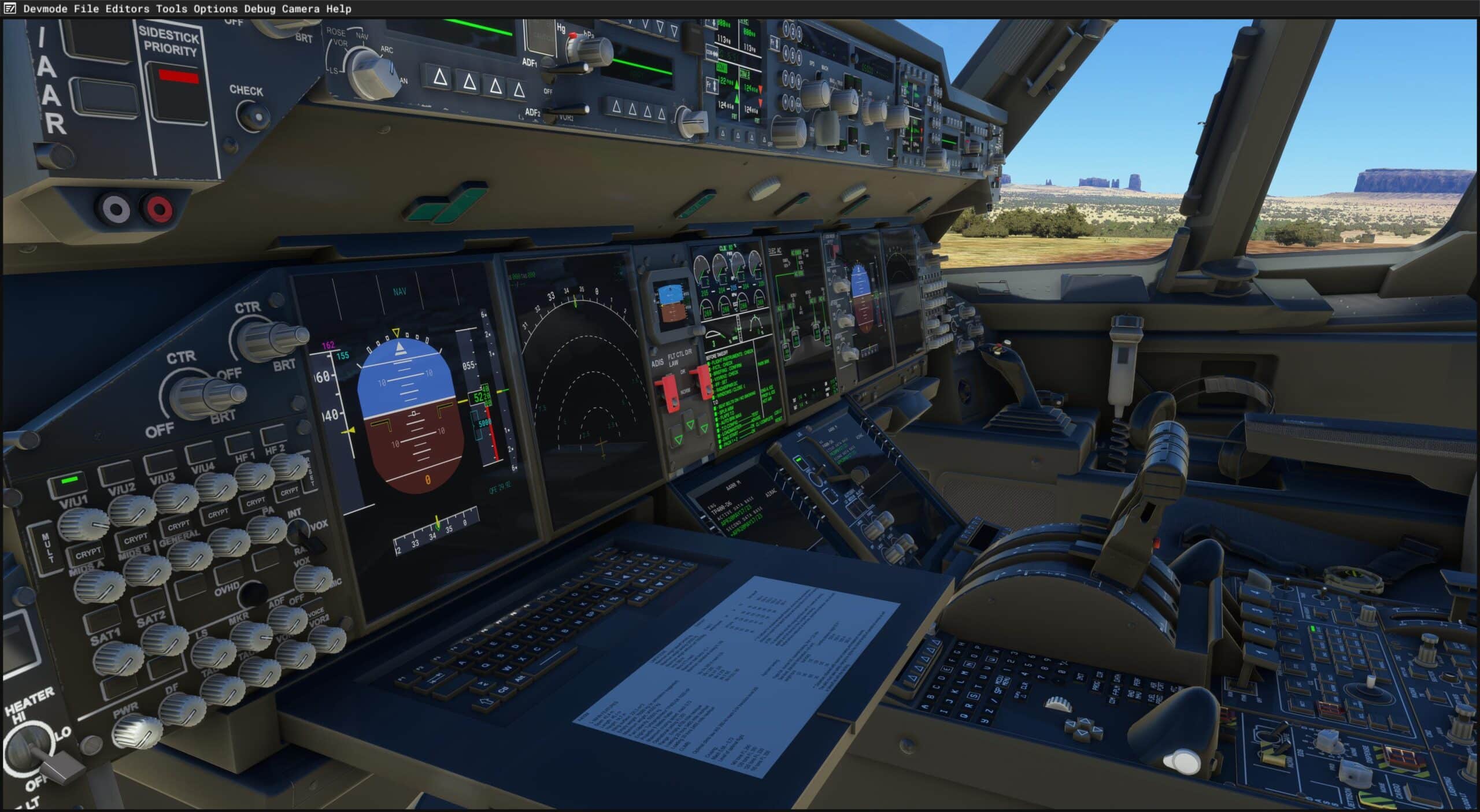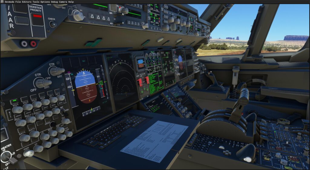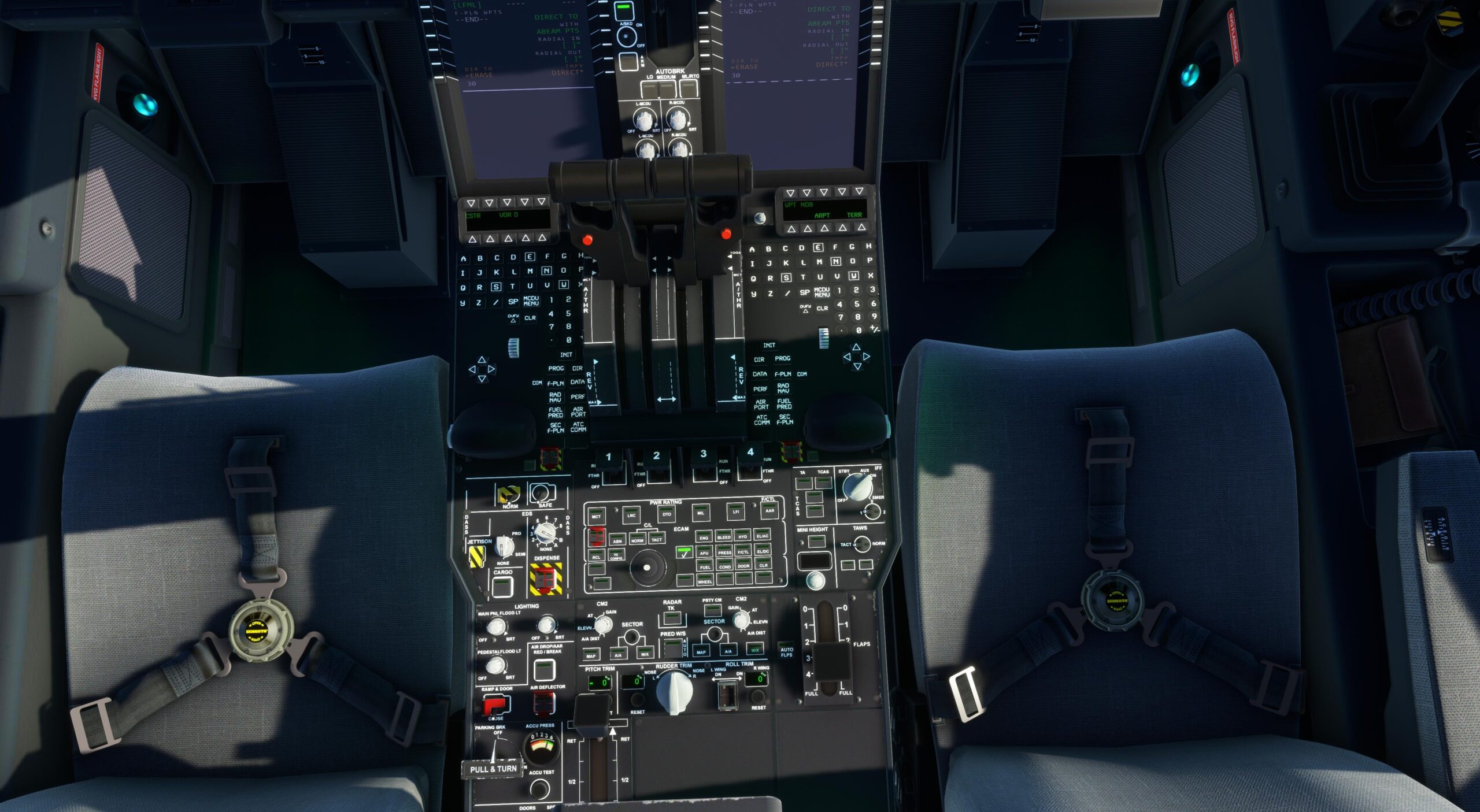 - 3D modeled gauges – PFD – MFD – AP – Terrain follow – MCDU.
