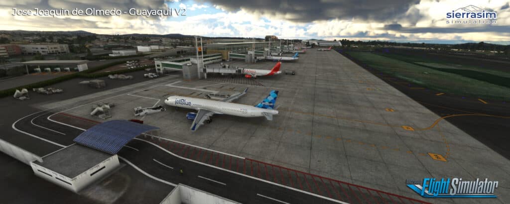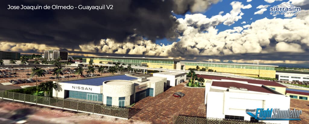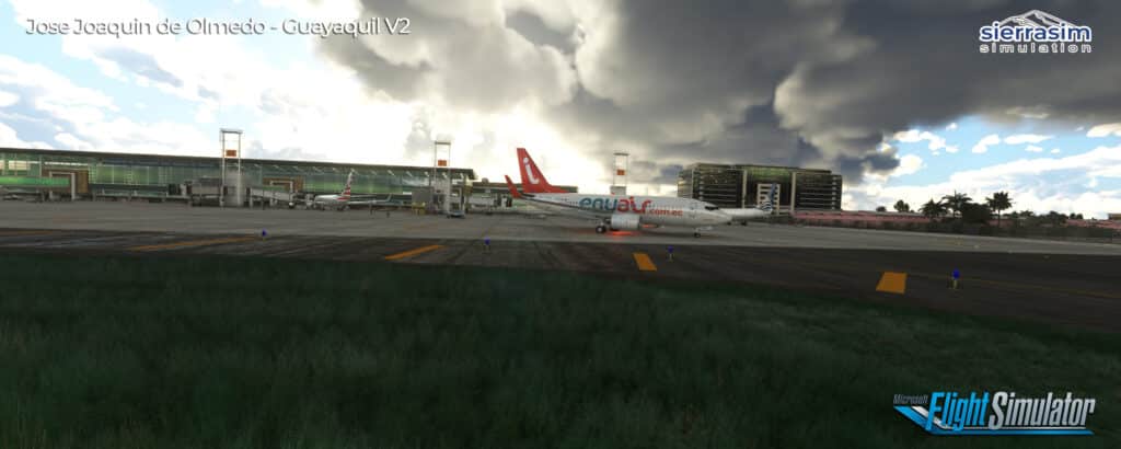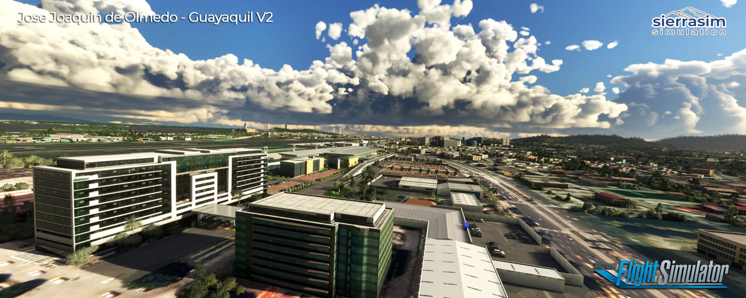 Sierrasim Simulation presents José Joaquín de Olmedo Intl SEGU MSFS, a lovely detailed airport scenery for MSFS in Ecuador. It features improved airport models, high-quality textures, and custom jetways, providing an immersive environment. Explore Guayaquil City with over 10 points of interest, and enjoy the realistic interior terminal models. The scenery also offers improved ground textures and enhanced cargo, military, and general aviation areas for a comprehensive airport experience.