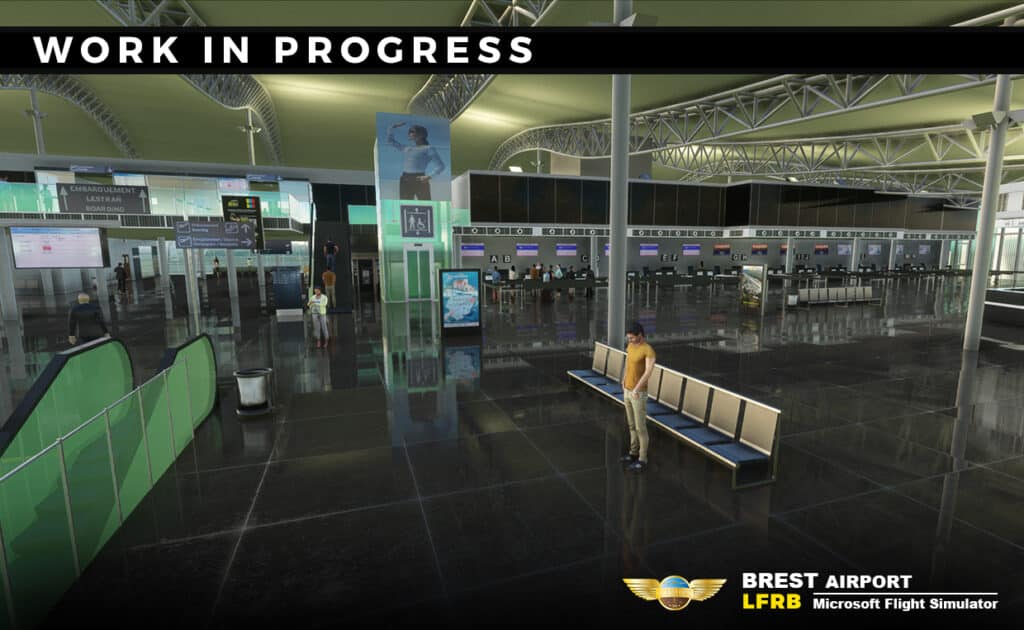 They are particularly proud of their design efforts on the realistic lights and detailed terminal interior in 3D. Their remaining tasks will cover the parking lot, ground service vehicles and the pole lights on the tarmac.
