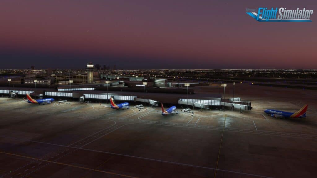 The KDAL Dallas Airport scenery offers a highly detailed and visually appealing experience in MSFS. PBR texturing enhances the realism of the airport’s models, while the complete ground polygon includes meticulous details such as decals, lines, dirt, and grime. Custom animated jetways, improved night lighting, and taxiway lighting create an immersive atmosphere for virtual pilots to explore.