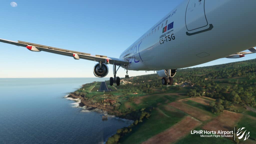 Pilots and virtual travelers are treated to breathtaking views of the picturesque town of Horta, the expansive Atlantic Ocean, and the volcanic landscapes, enhancing the immersive experience.