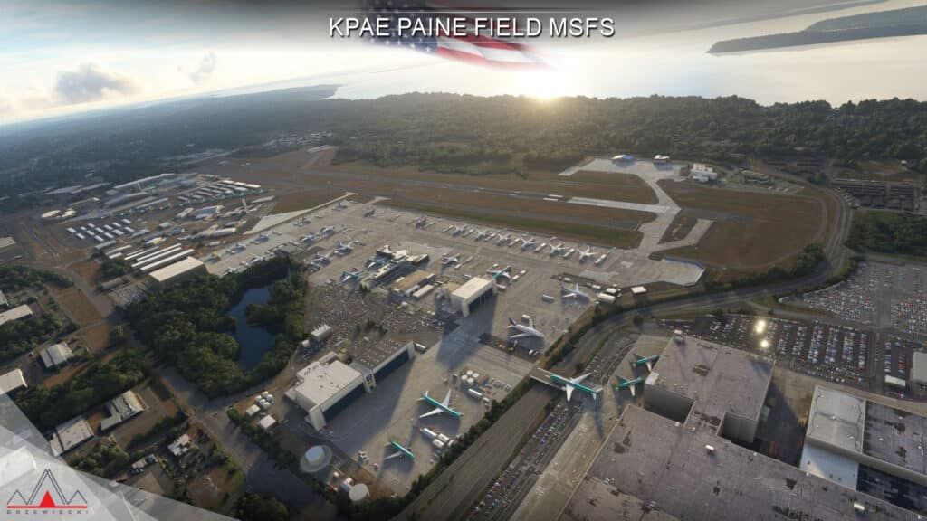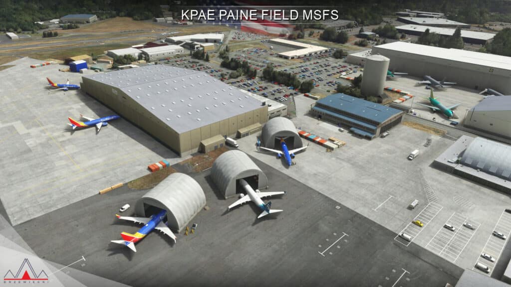 Welcome the aviation marvel of the Pacific Northwest with Drzewiecki Design’s KPAE Paine Field MSFS for Microsoft Flight Simulator. This highly detailed scenery transports you to Paine Field International Airport, nestled between Mukilteo and Everett in Washington state. It’s a historically rich airport with roots dating back to the 1930s and is famed for housing the Boeing Everett Factory, the largest building in the world by volume.