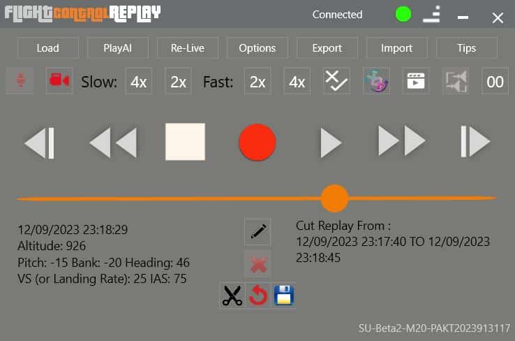 The customizable User Interface of FlightControlReplay 5 gets a step further. You could already select among three sizes of the layout, set it transparent, or ensure it remains always on top of other windows. Plus, the MSFS integrated interface to let you control the main features directly from your simulator without switching windows.