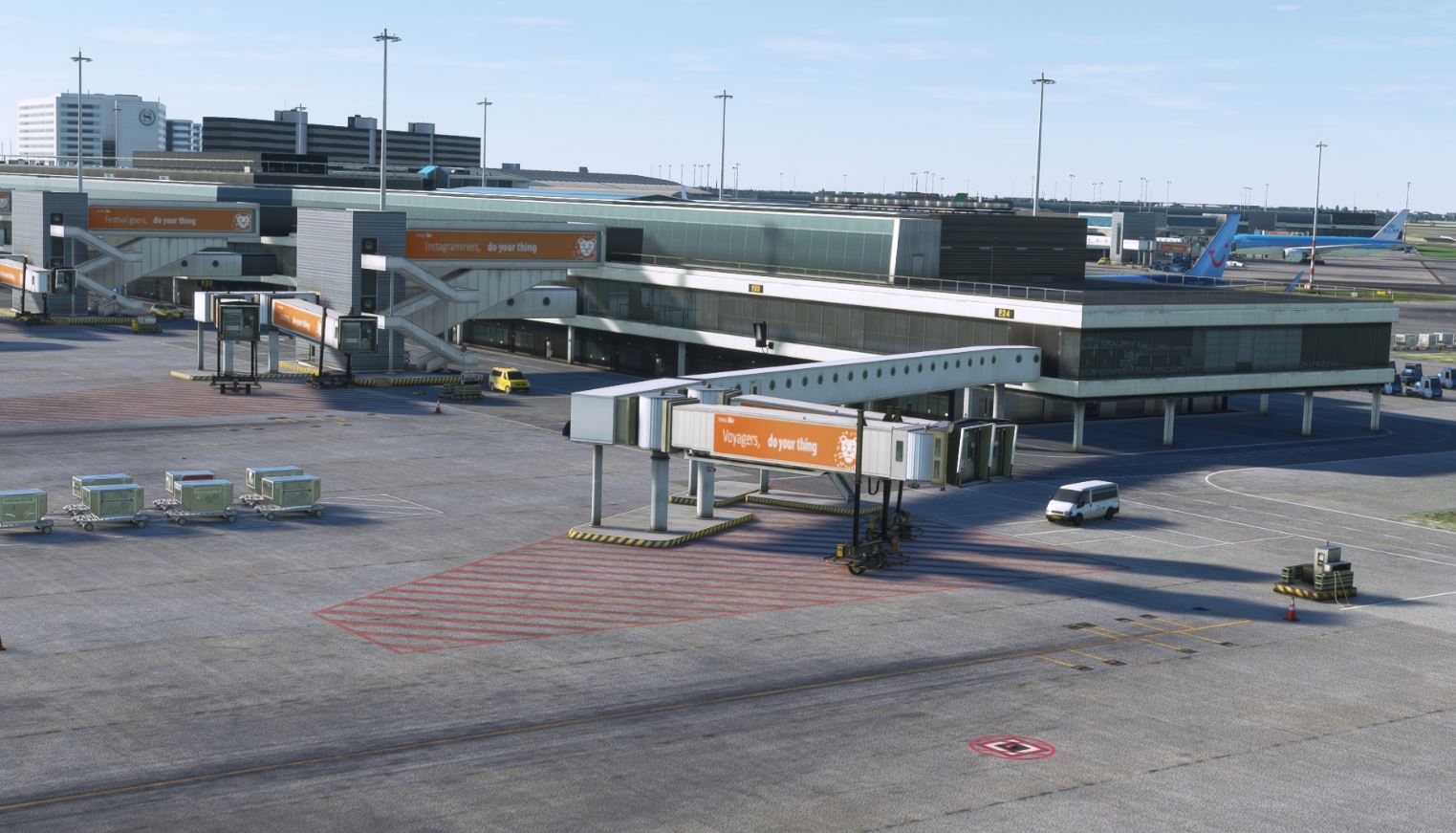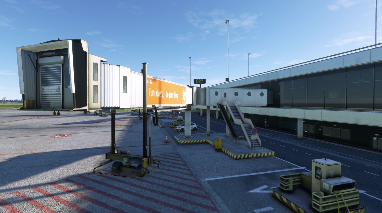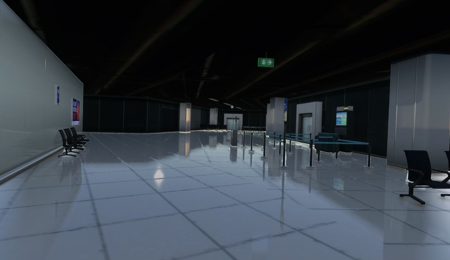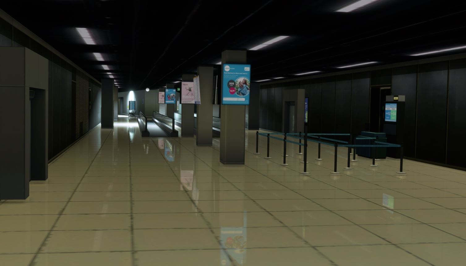 The inclusion of airport terminal interiors is an aspect of airport modelling that we have come to expect with newly released airports created for MSFS. The way they handled this aspect in my opinion gives the flight simmer the best of both worlds. Sitting in the cockpit of your aircraft at a gate you get to see into the terminal so your view is much more immersive. If you slew into the terminal you will see all of the objects visible from the exterior however the windows were not transparent so you don’t get to observe the outside world from the waiting passenger’s point of view. I believe that this probably helped to cut down on the workload of the PC allowing for better overall performance. I may explore a terminal`s interior at the outset just out of curiosity however after that I must say that I never usually do it again so I am happy with the manner in which they chose to handle this facet of the scenery. I much prefer they expend their resources on making the exterior world as real as it gets because that is where I spend the bulk of my time.