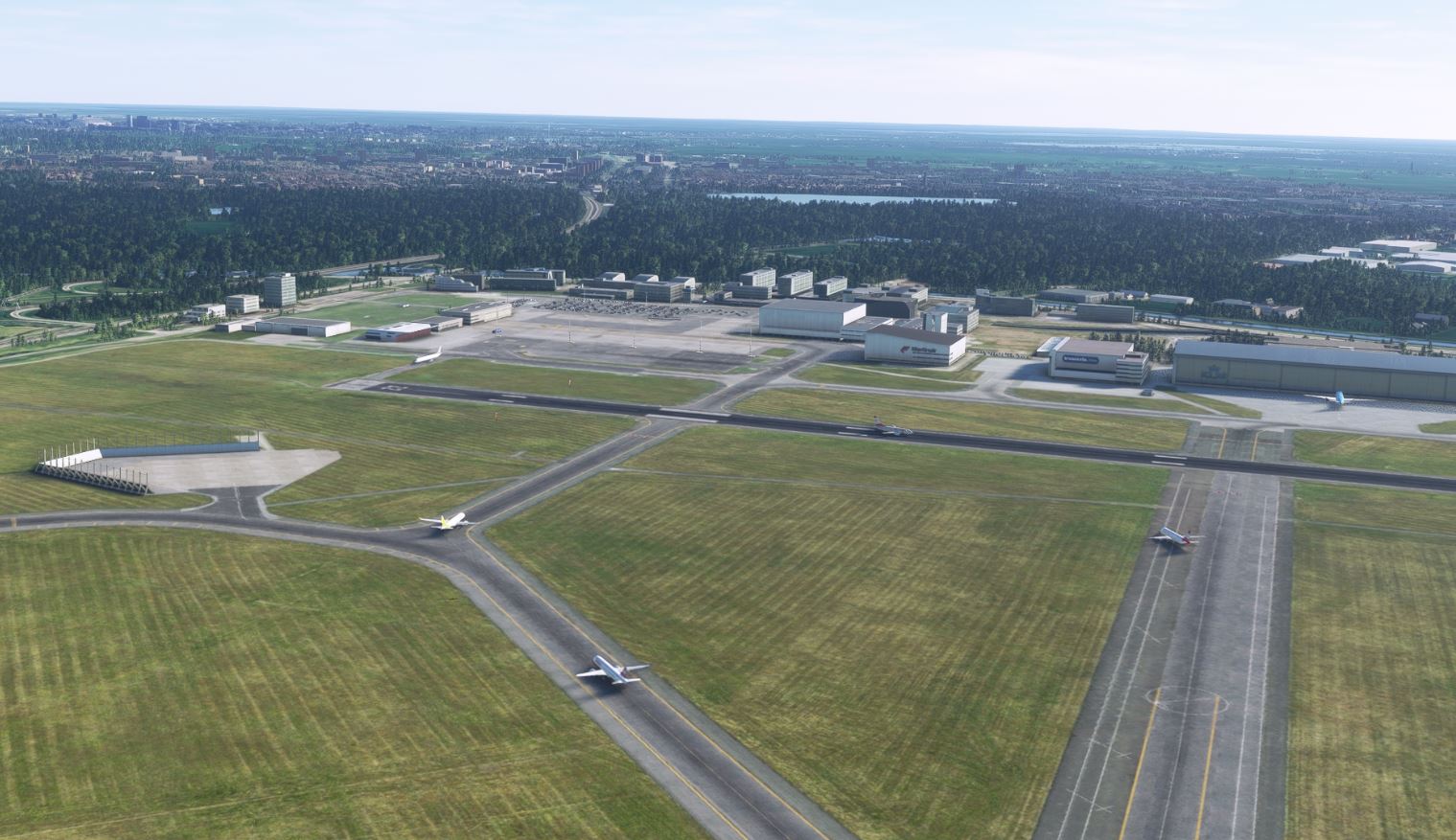High quality, detailed and realistic; that about sums it up when it comes to the ground textures. No matter where I looked or how closely I looked I was thoroughly impressed with what I saw. Considering the track record of this well known developer I was expecting nothing less. As you will see in the various screenshots their work was top-notch in every way. Something that becomes noticeable as you explore the airport grounds is the abundance of narrow waterways that traverse the area. These were all depicted in 3 dimensions and not merely as colours on the ground textures. In addition to these water features this airport also has a number of sunken and raised roadways and taxiways that crisscross the airport as well and these have also been rendered in 3 dimensions and not as simple flat graphics.