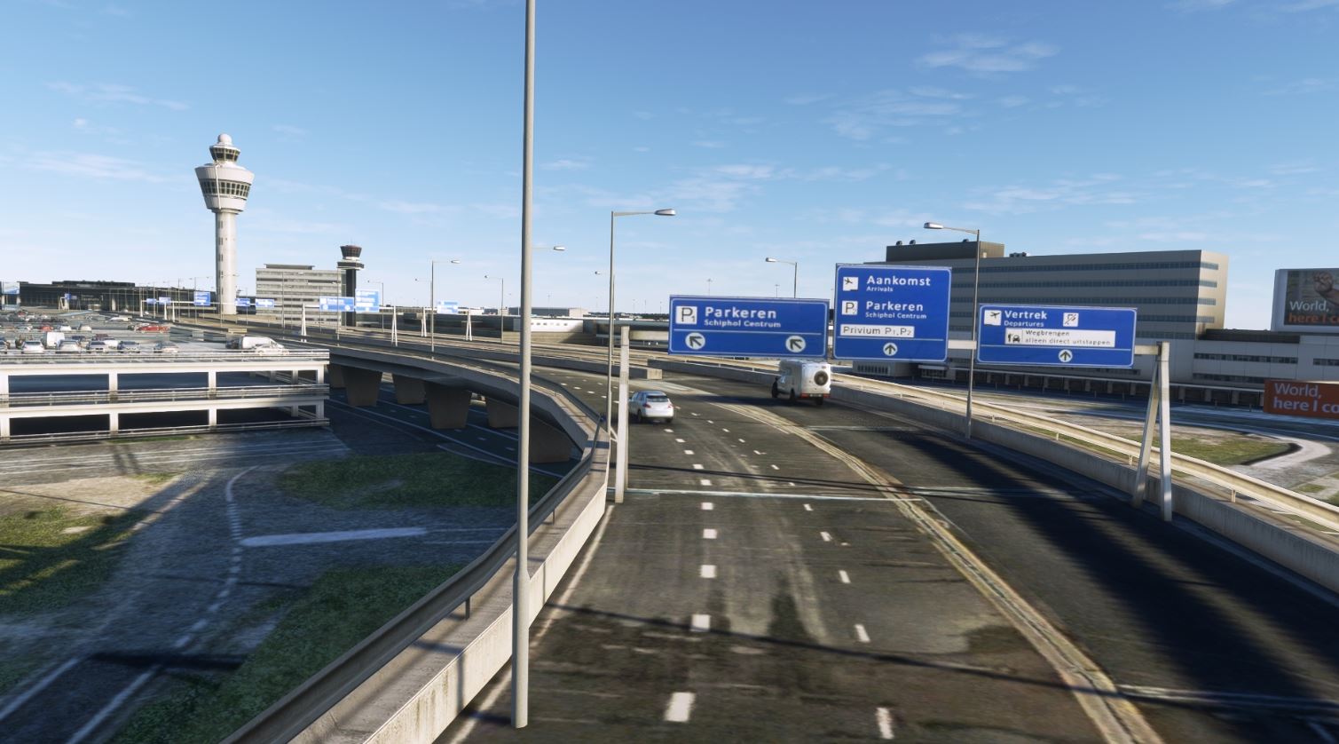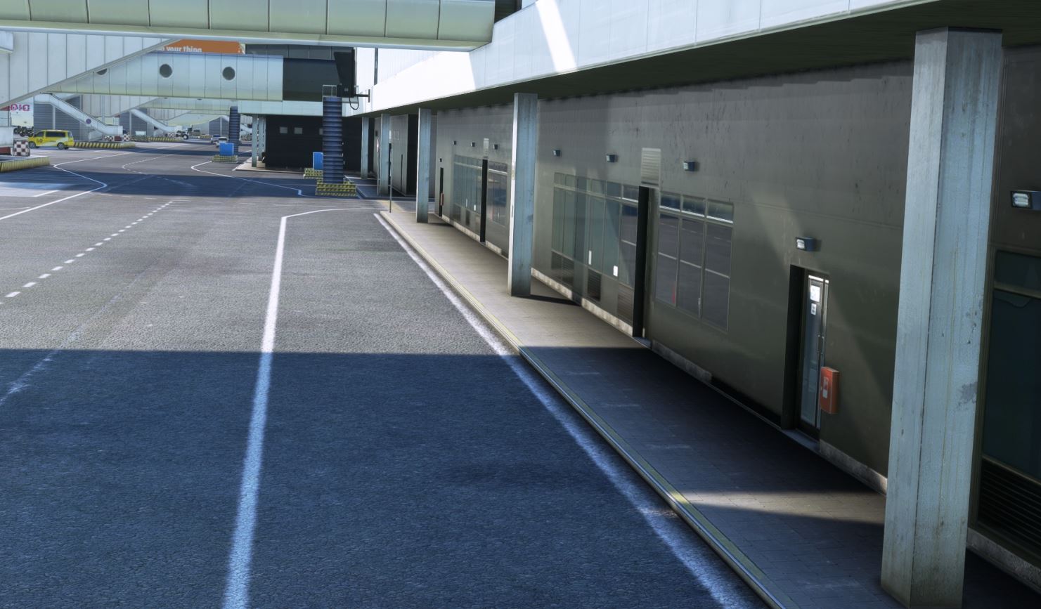 Jet ways are animated along with the inclusion of visual docking aids. Airport service vehicles of various types could be seen moving around on airport roads and taxiways. Civilian vehicle traffic was also added to the adjacent highways and roads.