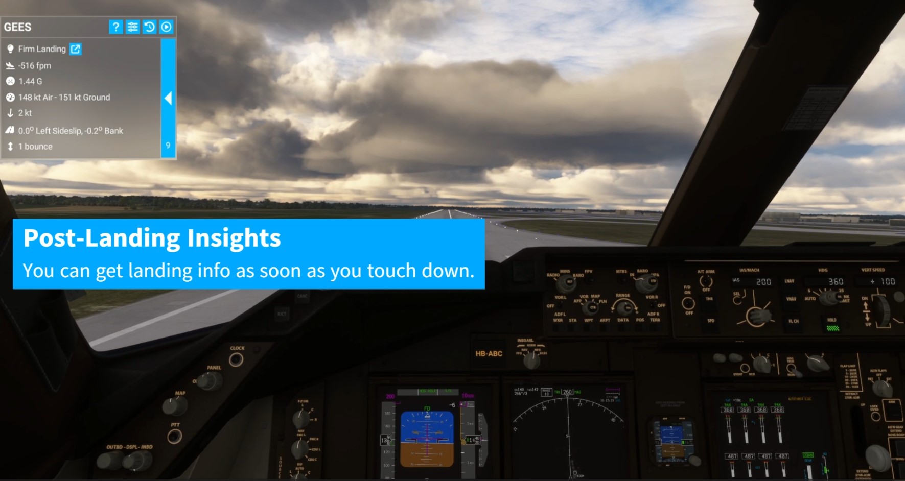 Gees 2.0 MSFS, now available on SIMMARKET, is an in-game landing analysis addon designed for Microsoft Flight Simulator 2020. This innovative tool fills a gap in the simulation experience by providing detailed insights into your landing skills. The addon offers information on various aspects, including landing rate, G-force, landing speed, wind speed and direction, sideslip and bank angles, the number of bounces, and landing location. Gees enhances the simulation by adding an instant replay feature, allowing users to review and appreciate successful landings.