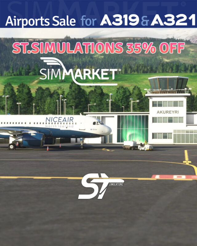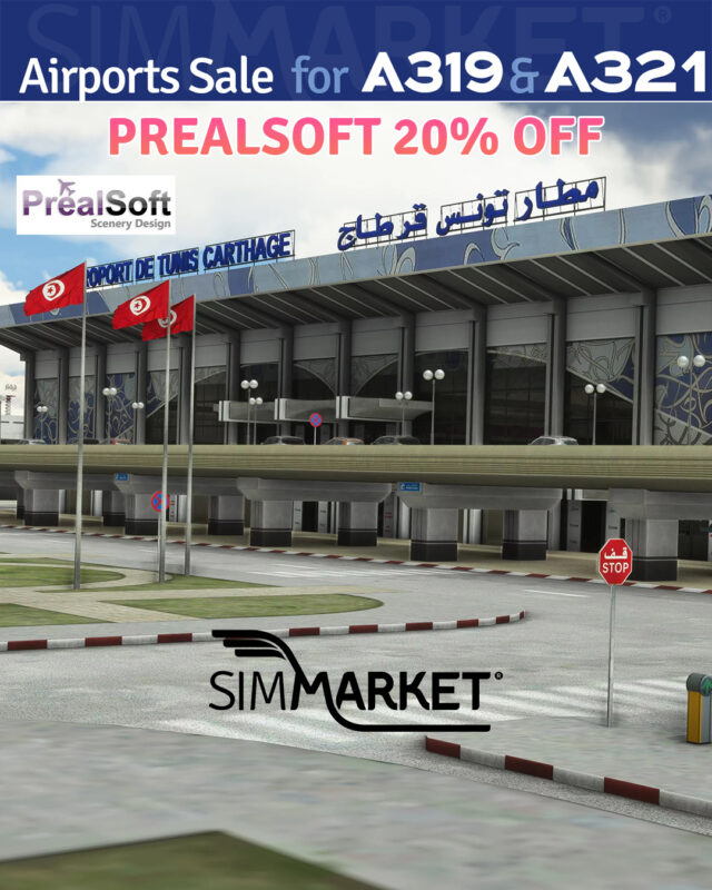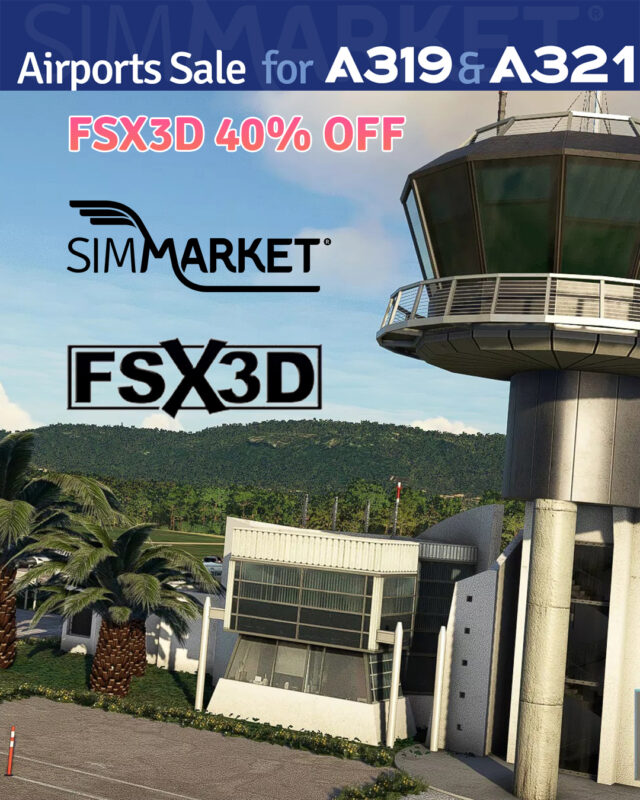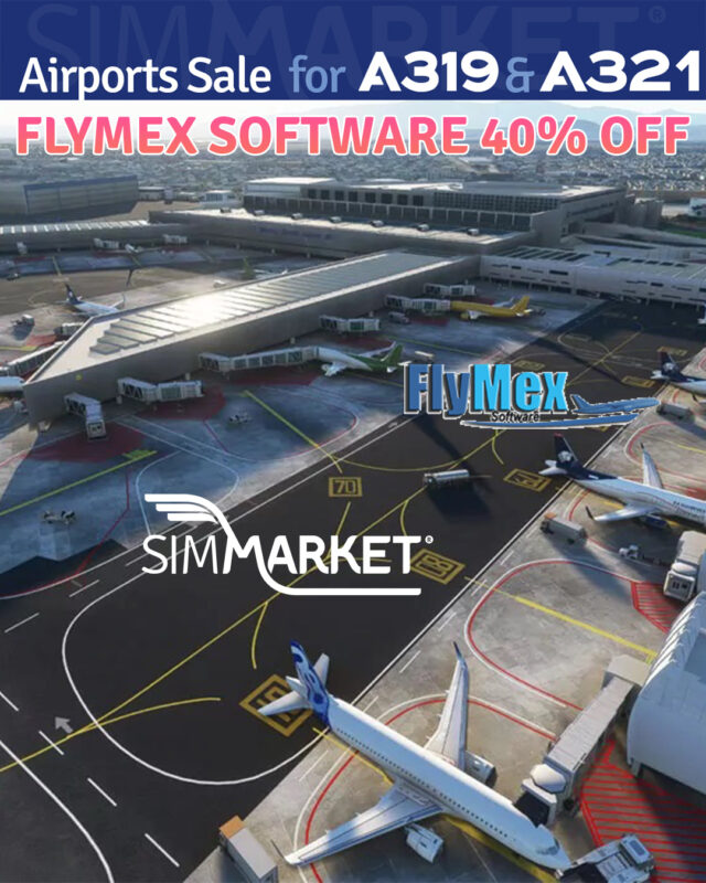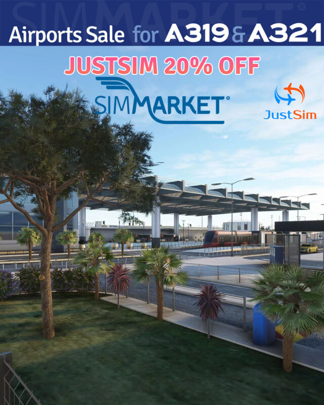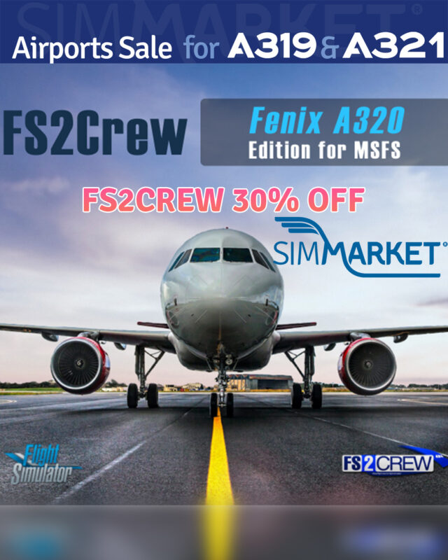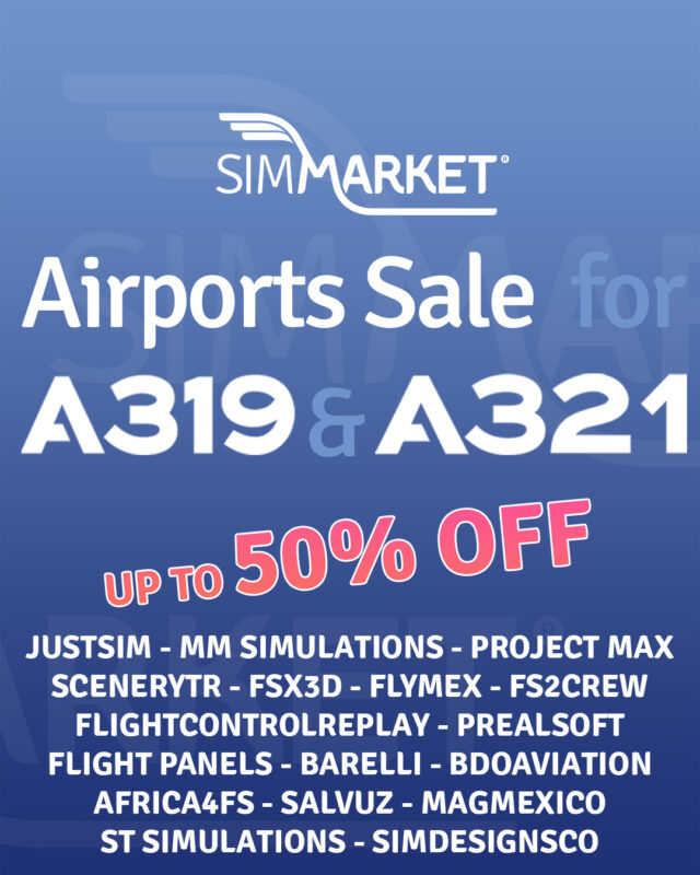 SIMMARKET is offering a sale on airports and tools to join the party celebrating the recent release by Fenix Simulations of their popular A319 and A321 in Microsoft Flight Simulator with discounts of up to 50%. Various vendors are participating, including JustSim (20% off), FS2Crew for Fenix (30% off), MM Simulations (up to 40% off), and more. Notable discounts include Prealsoft, SceneryTR Design, and Project MAX, with offers ranging from 20% to 50% off. The sale features a wide range of products, from scenery enhancements to flight tools, catering to different aspects of the MSFS experience.