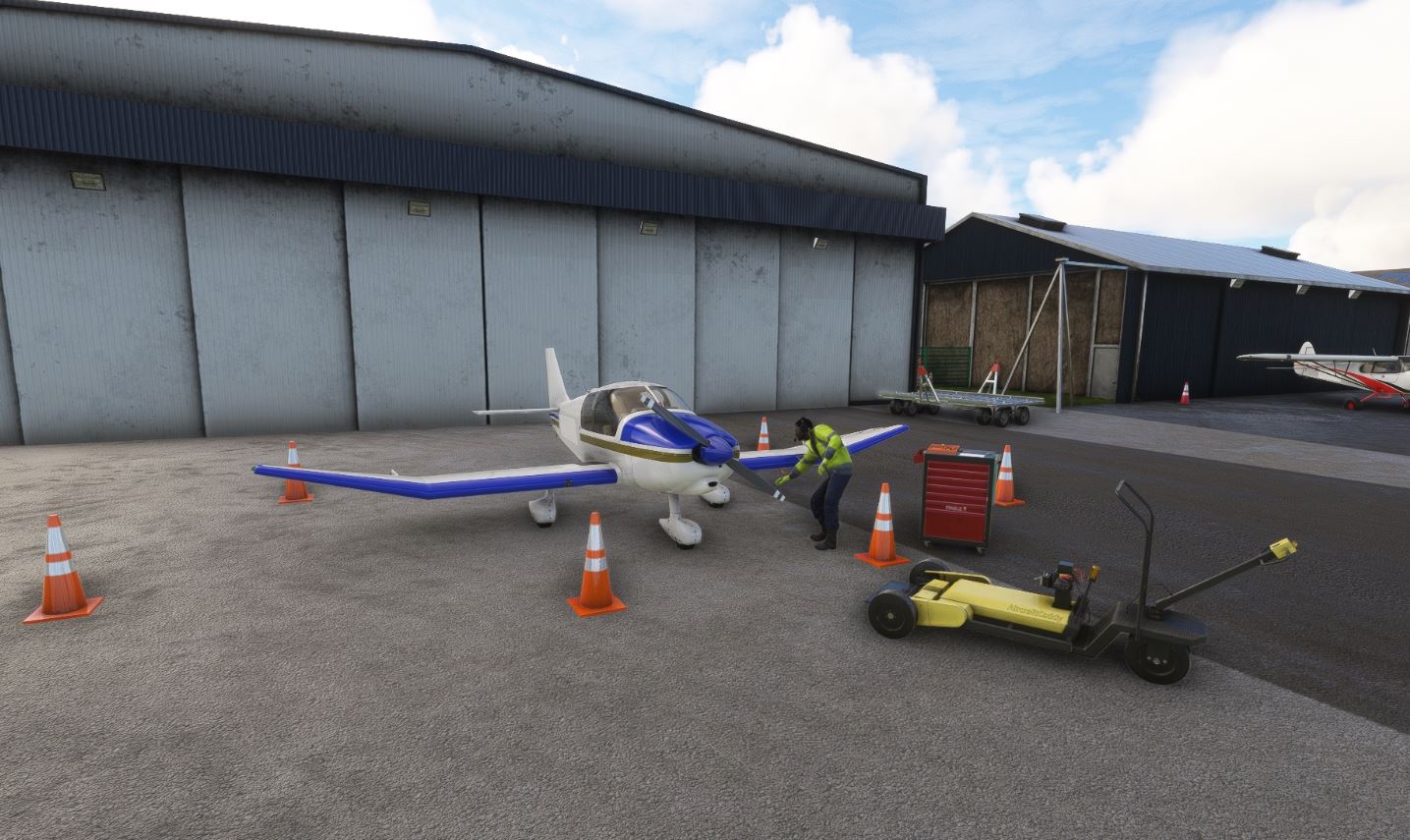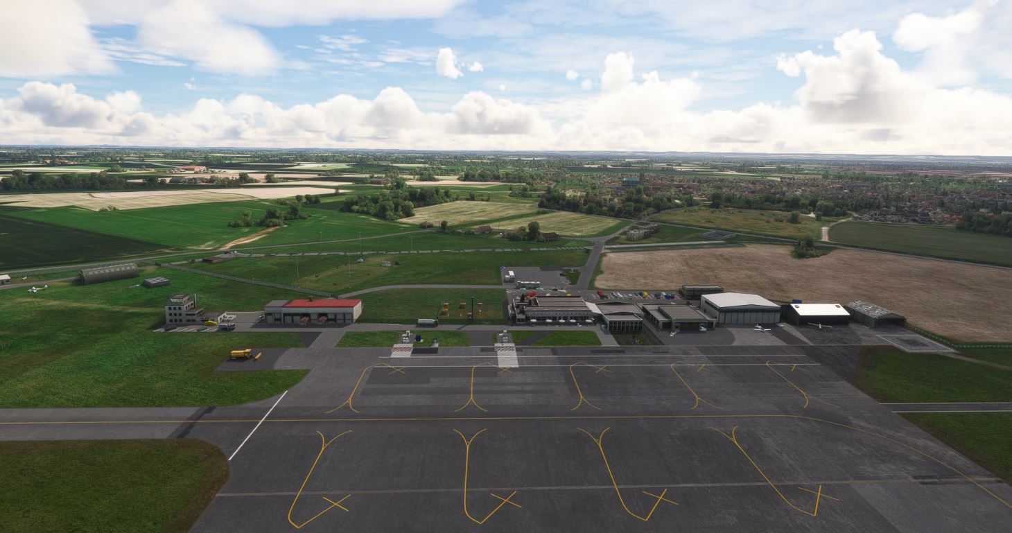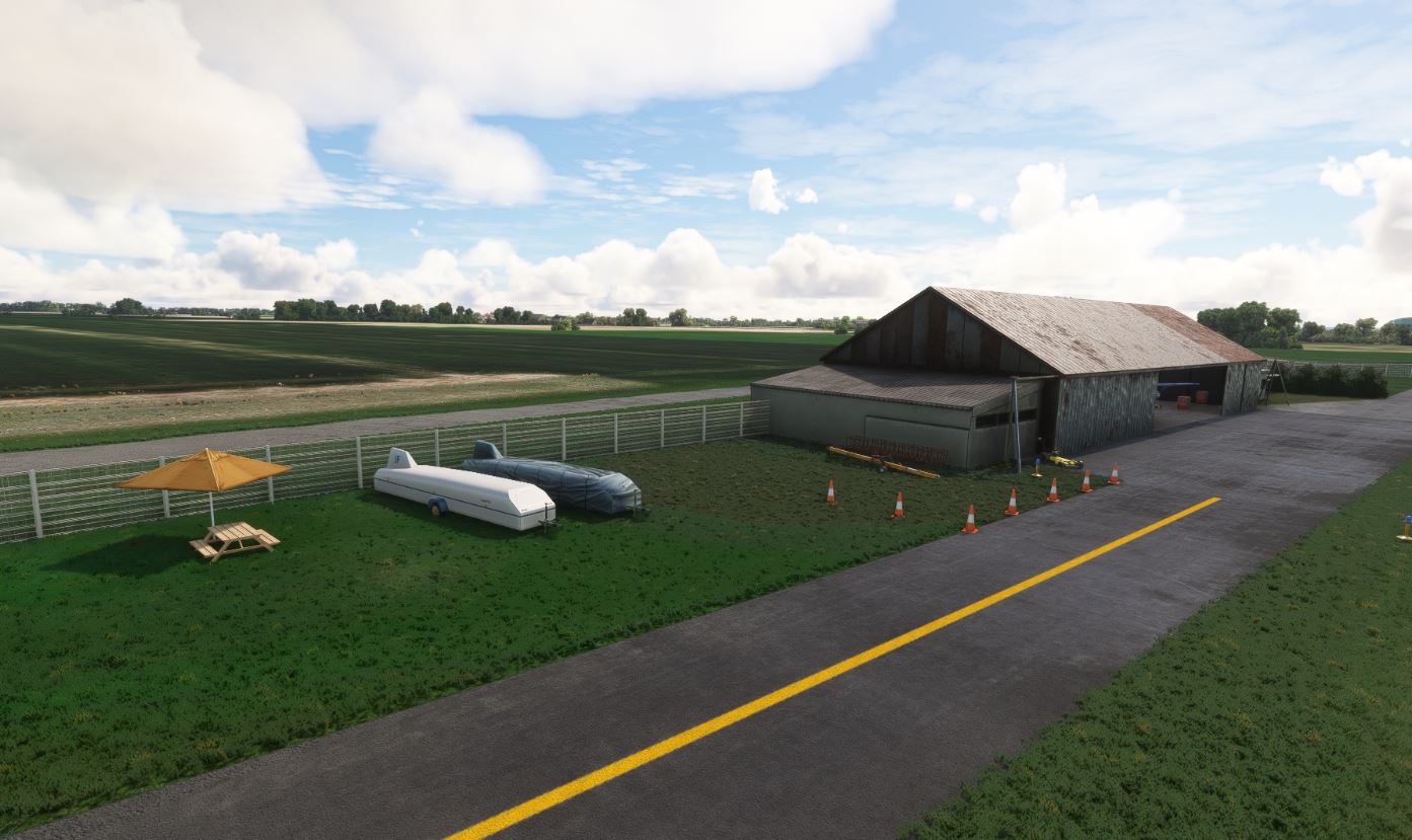 The airport has been recreated from the ground up using high quality, high resolution detailed textures to provide great visuals even when viewed up close. I was very happy with all aspects of the airport. Hard surfaces were relatively clean with the exception of runway touchdown zones which are to be expected as this is a small airport seeing mostly small private aircraft. Grassy areas were modelled with 3d textures with varying colours to differentiate between grasses, livestock pasture areas and agricultural fields.