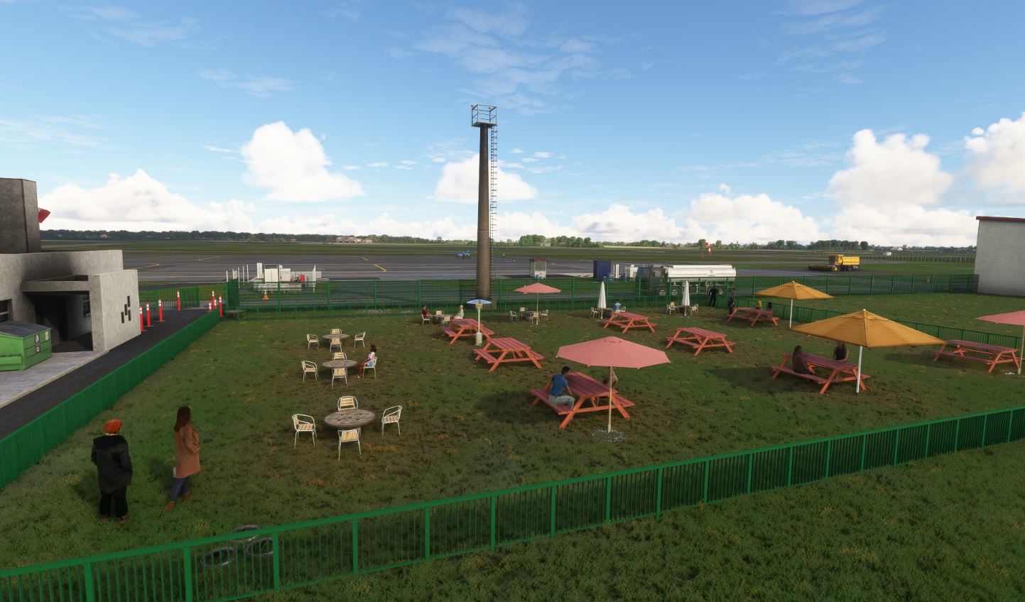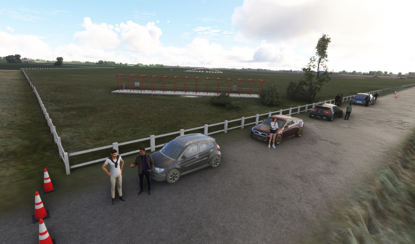 The product covers an area that extends slightly beyond the airport boundaries and in doing so they were able to include some extra objects that enhance the visual experience when flying overhead or on an approach. As an example, at the end of runway 06 on the Rue du Canal which runs along the airport perimeter there are a number of people and vehicles stopped appearing to be plane spotting.